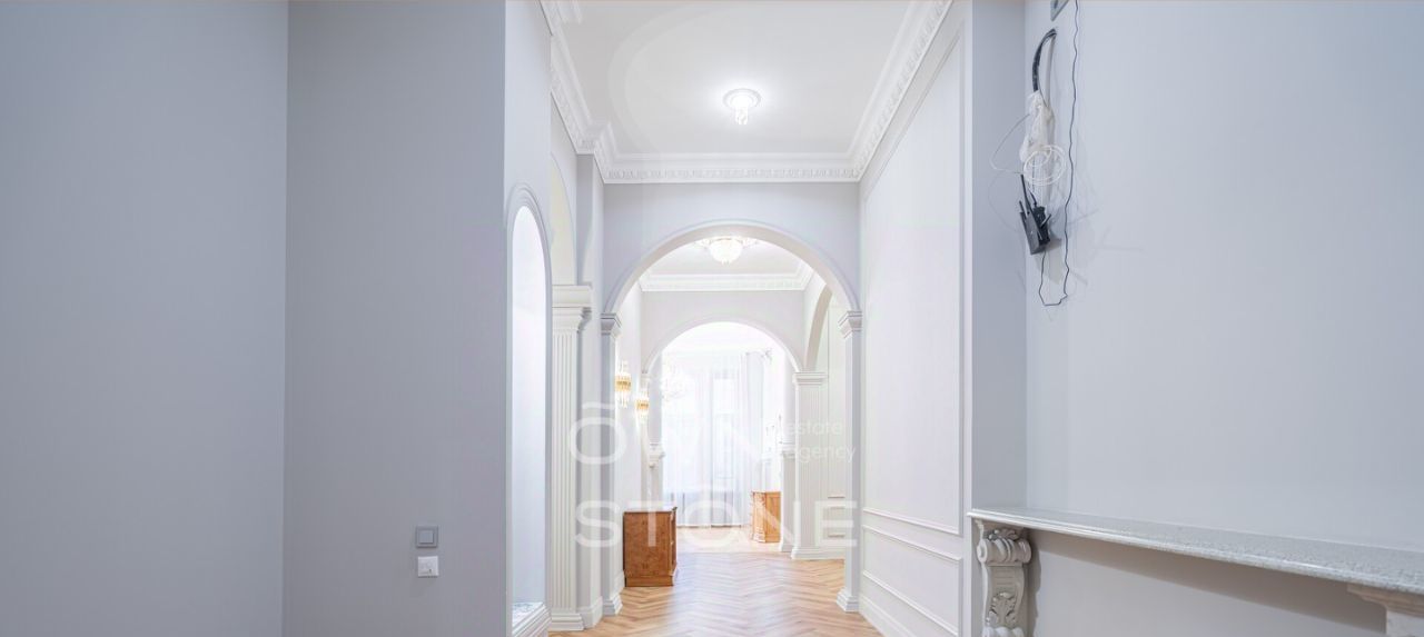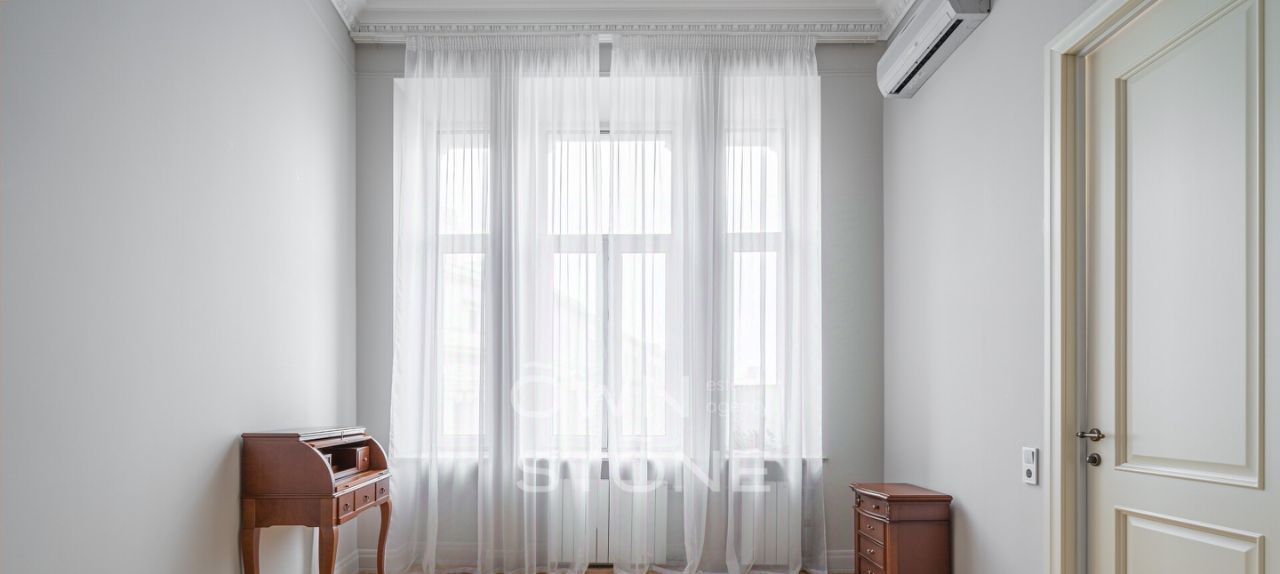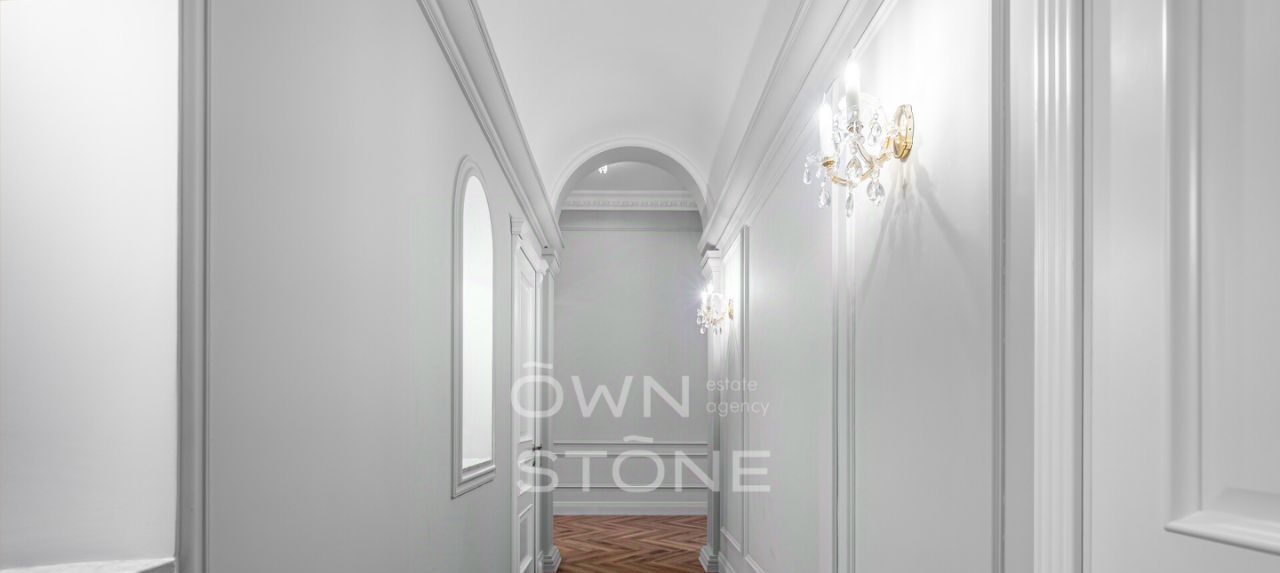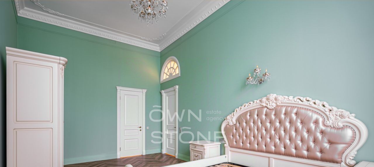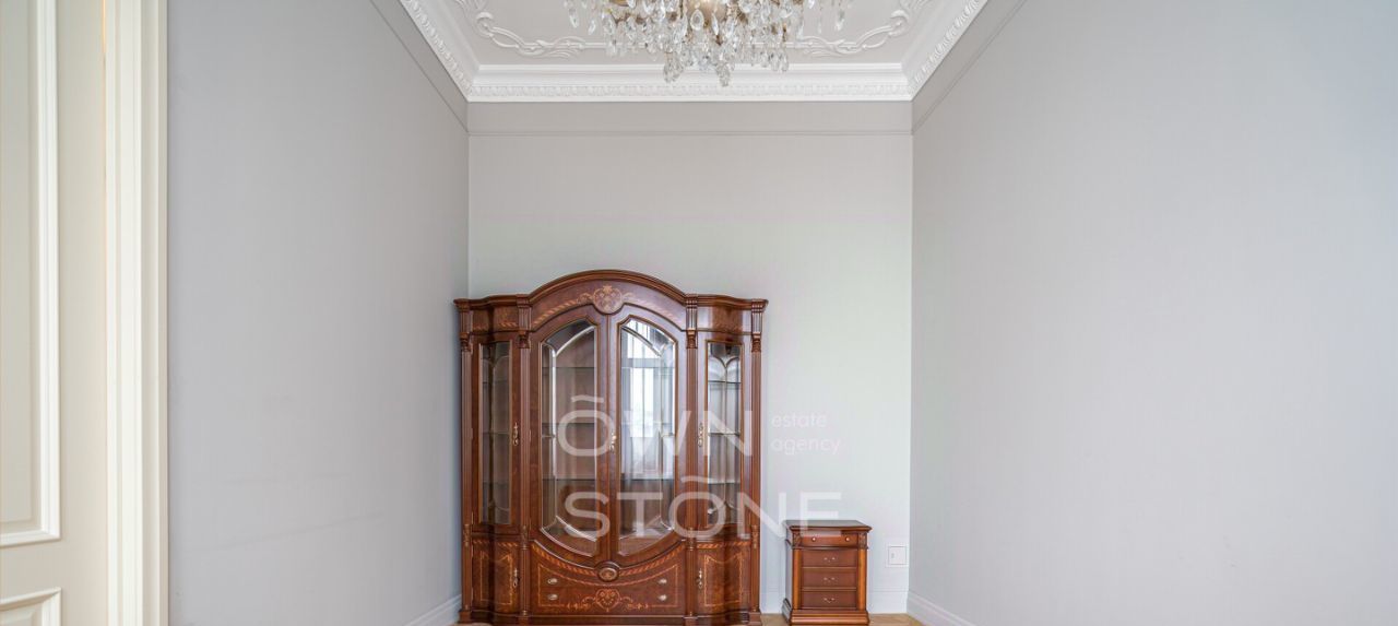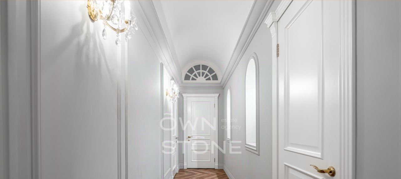 Стильная 5-комнатная квартира. 3/7 этаж. Высота потоков - 3.4 м. Количество спален: 4. Количество санузлов: 2 совмещенный. Общая площадь: 205 кв. м. Площадь кухни: 24 кв. м. Площадь комнат: 126 кв. м Окна во двор и на улицу