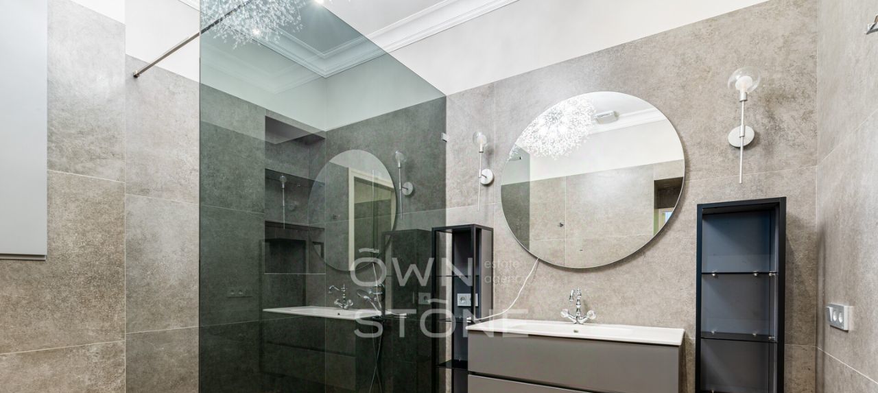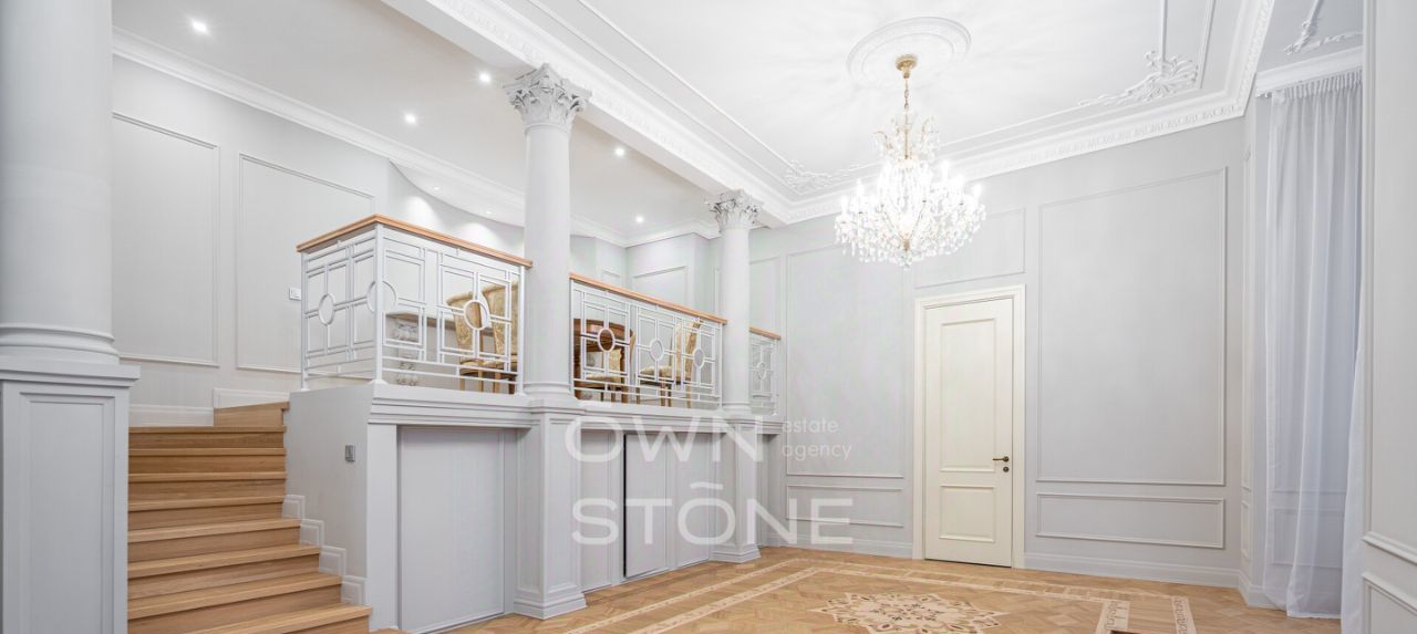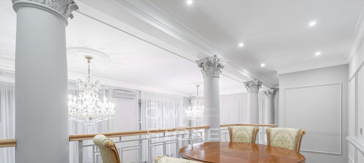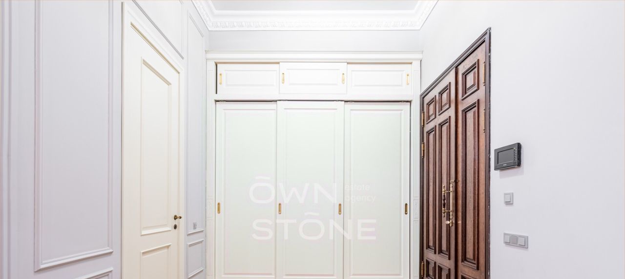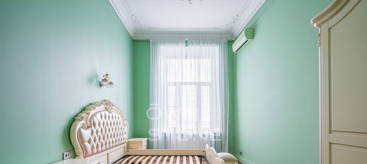 Стильная 5-комнатная квартира. 3/7 этаж. Высота потоков - 3.4 м. Количество спален: 4. Количество санузлов: 2 совмещенный. Общая площадь: 205 кв. м. Площадь кухни: 24 кв. м. Площадь комнат: 126 кв. м Окна во двор и на улицу