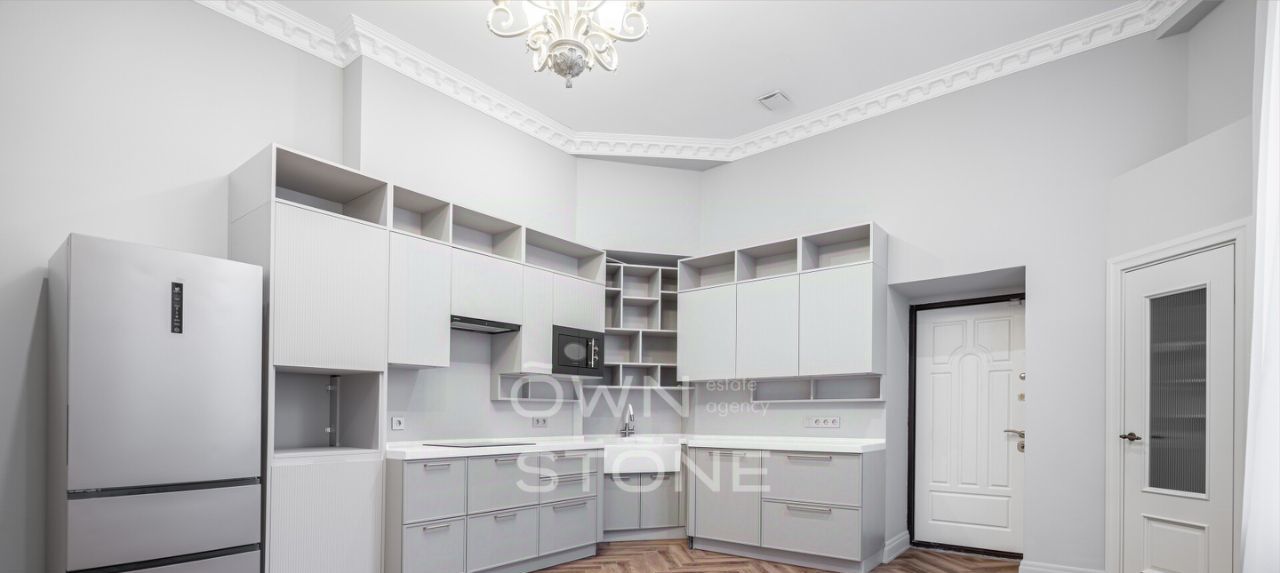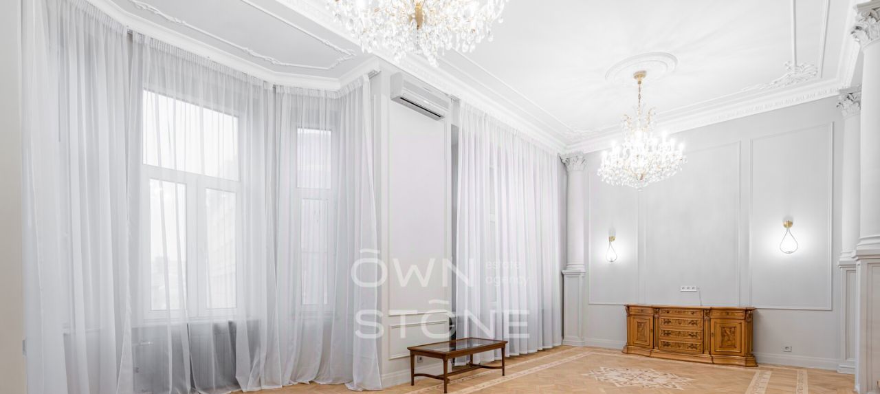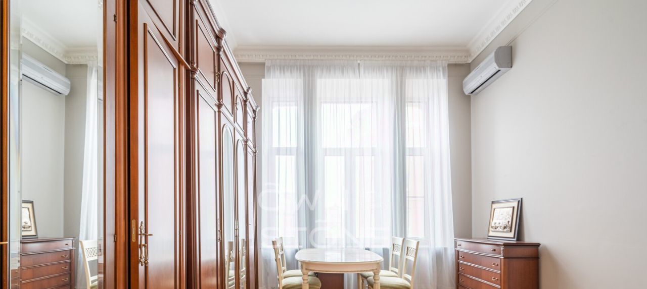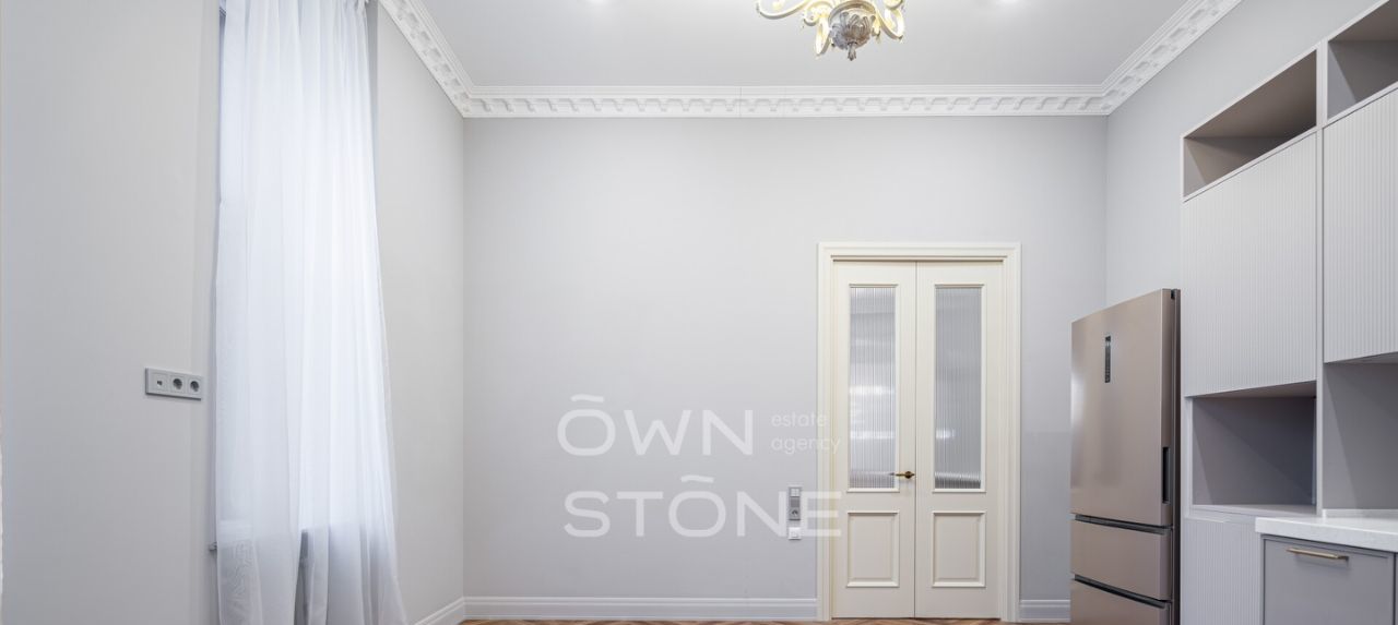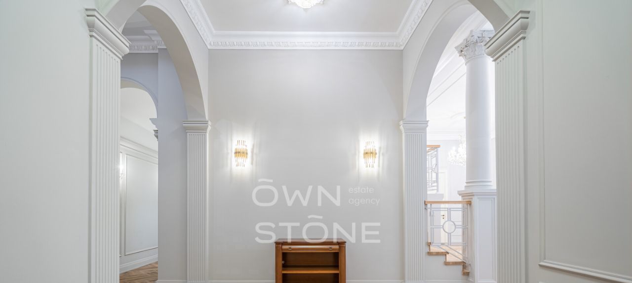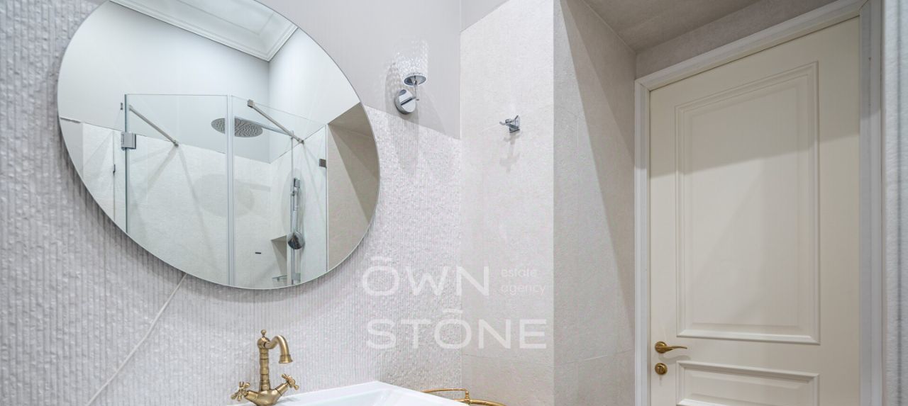 Стильная 5-комнатная квартира. 3/7 этаж. Высота потоков - 3.4 м. Количество спален: 4. Количество санузлов: 2 совмещенный. Общая площадь: 205 кв. м. Площадь кухни: 24 кв. м. Площадь комнат: 126 кв. м Окна во двор и на улицу