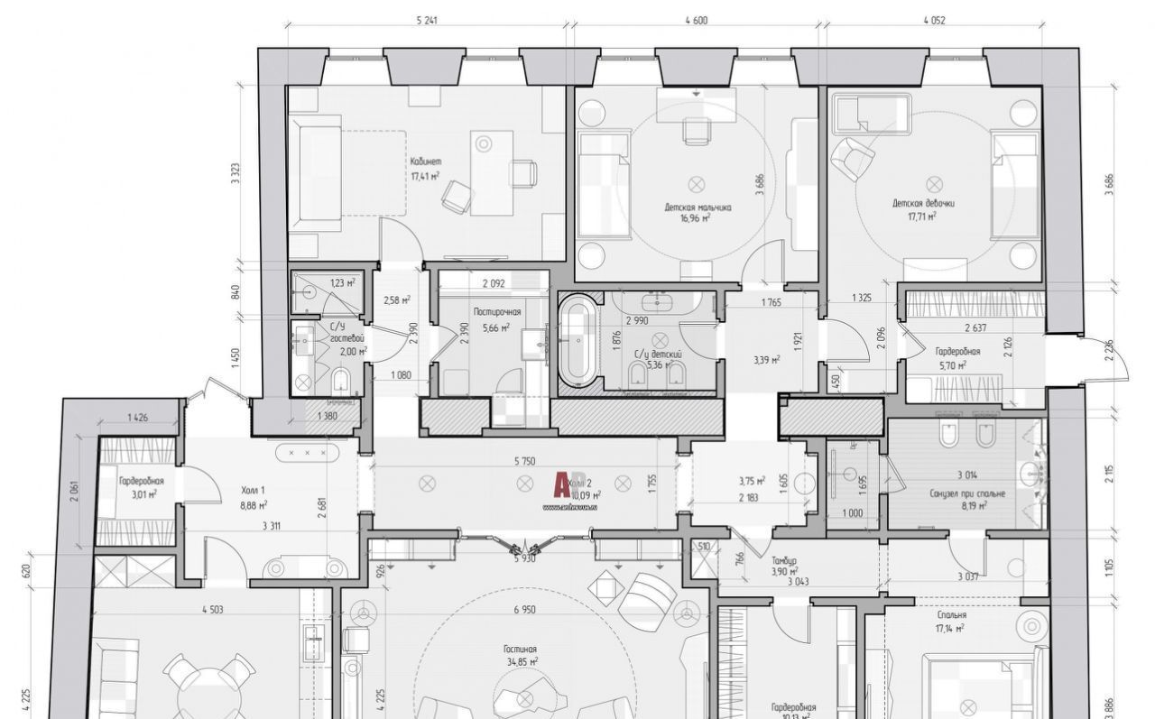 Парадный проект знаменитого дизайнера Анны Зиньковой, в котором классика изящно смиксована с коллекционным дизайном, винтажными, антикварными и современными предметами роскоши и искусства.