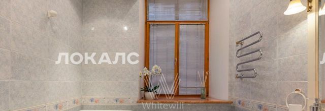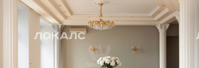 Просторная квартира с пятью спальнями общей площадью 202 м² в комплексе бизнес-класса "Дом на набережной" на втором этаже. Выполнена дизайнерская отделка в классическом стиле в светлых тонах. Интерьер украшают белые колонны, лепнина и хрустальные люстры. Ремонт выполняли мастера, принимавшие участие в реставрационных работах в Кремле. Благодаря большому количеству окон пространство наполнено естественным светом. Из окон открывается вид на башни Кремля и в тихий двор.