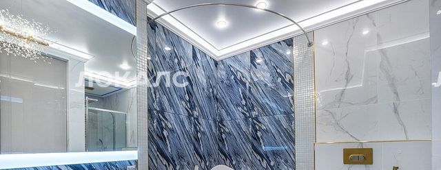 Продуманная планировка: большой холл с встроенными шкафами, просторная гостиная переходящая в зону столовой, кухня оборудована полным комплектом бытовой техники и посуды лучших мировых брендов; мастер-спальня с выходом на лоджию, гардеробная, ещё одна спальня и кабинет; два больших санузла с ванной и душевыми. Две просторные лоджии с красивыми панорамными видами. Большие окна дают много света, мягкие тона отделки и мебели, многоуровневое освещение, оттенки и яркость которого можно регулировать, создают неповторимо-теплую и уютную атмосферу.