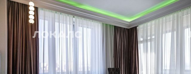 Продуманная планировка: большой холл с встроенными шкафами, просторная гостиная переходящая в зону столовой и кухни, оборудованной полным комплектом бытовой техники и посуды лучших мировых брендов; мастер-спальня с выходом на лоджию, гардеробная, ещё одна спальня и кабинет; два больших санузла с ванной и душевыми. Две просторные лоджии с красивыми панорамными видами. Большие окна дают много света. Мягкие тона отделки и мебели, многоуровневое освещение, оттенки и яркость которого можно регулировать, создают неповторимо-теплую и уютную атмосферу.