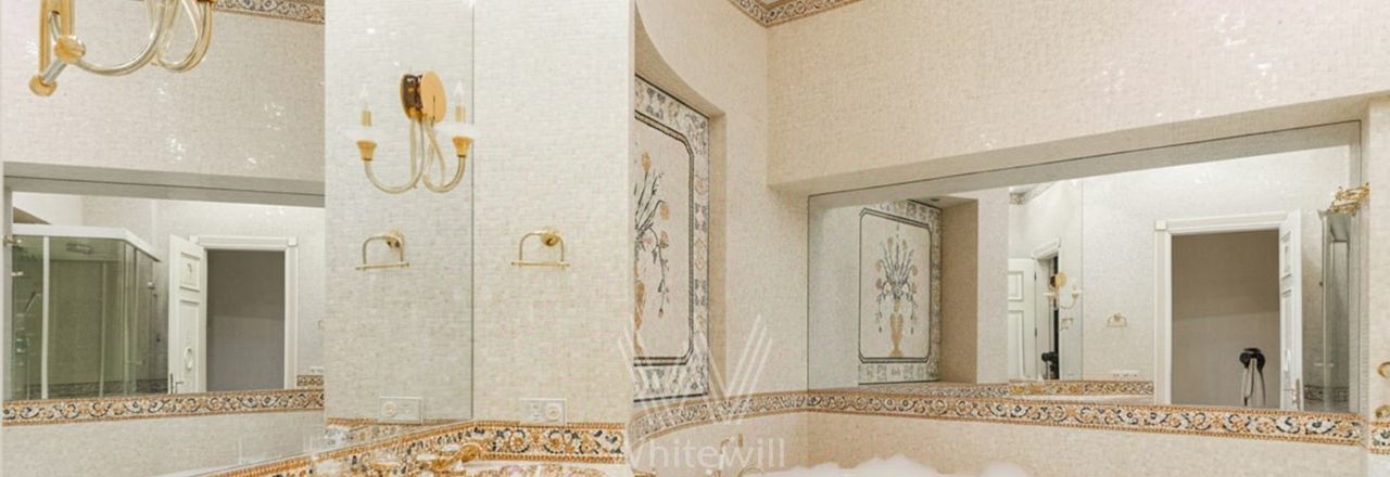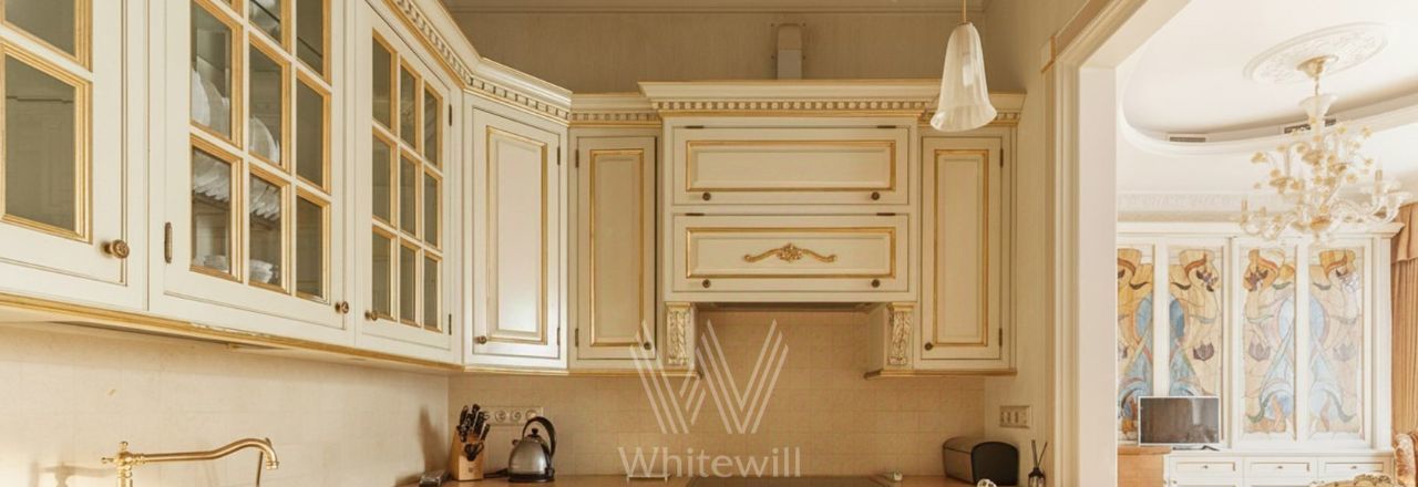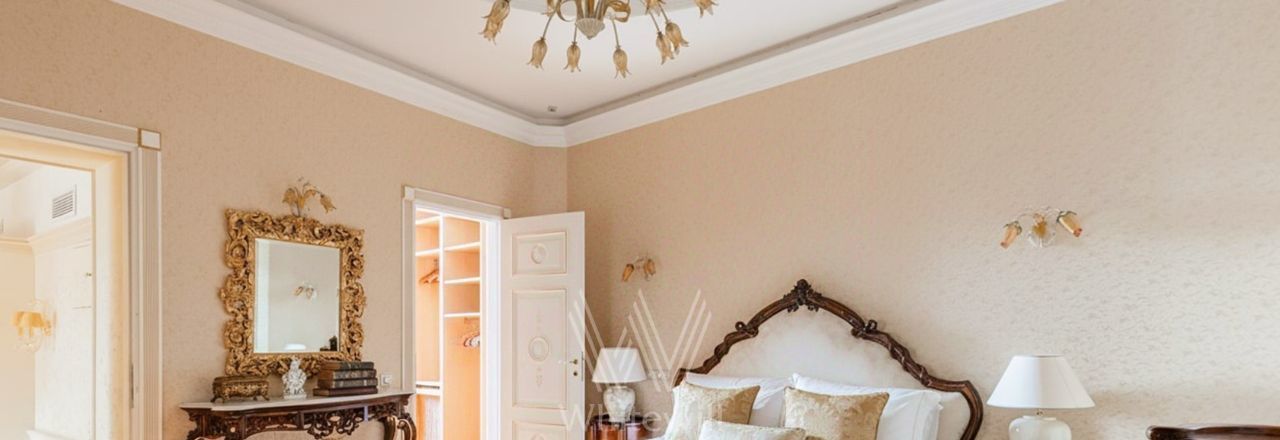 Квартира с 4 спальнями в доме "Вспольный переулок, 17" на Патриарших прудах. Квартира общей площадью 168 м² расположена на 4 этаже. Выполнена дизайнерская отделка в классическом стиле в светлых тонах. Спланирована кухня-гостиная с обеденной зоной, мастер-спальня с кабинетом, гардеробной и ванной комнатой, 4 спальни, гостевой санузел, постирочная, прихожая, балкон. Квартира полностью меблирована и оборудована бытовой техникой. Из окон открывается вид в тихий двор. Предусмотрены 2 закреплённых машино-места во дворе за шлагбаумом.