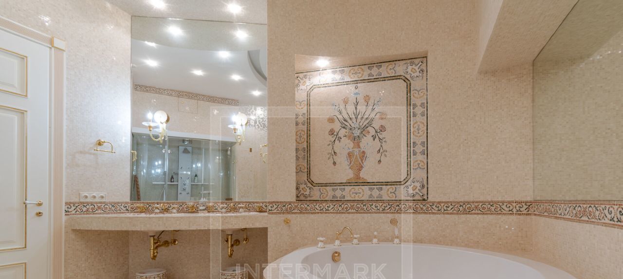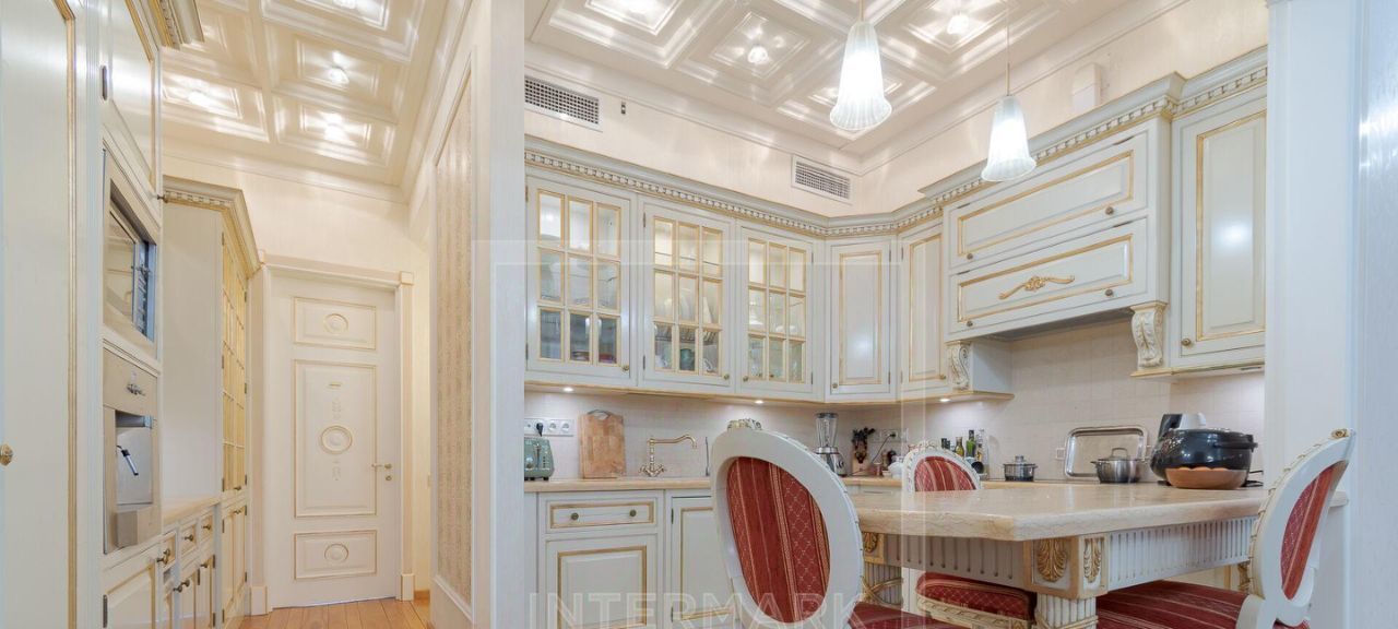 ID 44885. Уютная и просторная 5-комнатная квартира в престижном районе Патриарших прудов с отделкой в классическом стиле. Общая площадь: 170 кв. м. Грамотное зонирование: просторная кухня-гостиная с зоной столовой, главная спальня с вместительной гардеробной, уютный кабинет, 2 смежные детские спальни, застекленная лождия-терраса, основная ванная компана с ванной и душевой кабиной, гостевой туалет, есть постирочная и кладовка. Квартира полностью меблирована и укомплектована качественной бытовой техникой. В квартире много встроенных шкафов, потолки 3 м. Окна выходят на обе стороны во двор и в тихий переулок. В квартире установлена сплит-система, теплые полы, видео домофон, высокоскоростной интернет. На этаже одна квартира. Малоквартирный клубный дом с закрытым двором, круглосуточной охраной и видеонаблюдением, есть консьерж. В шаговой доступности: кафе, магазины, рестораны, бары, салоны красоты, музеи, театры и галереи. Парковка во дворе. Можно с детьми. Животные обсуждаются.