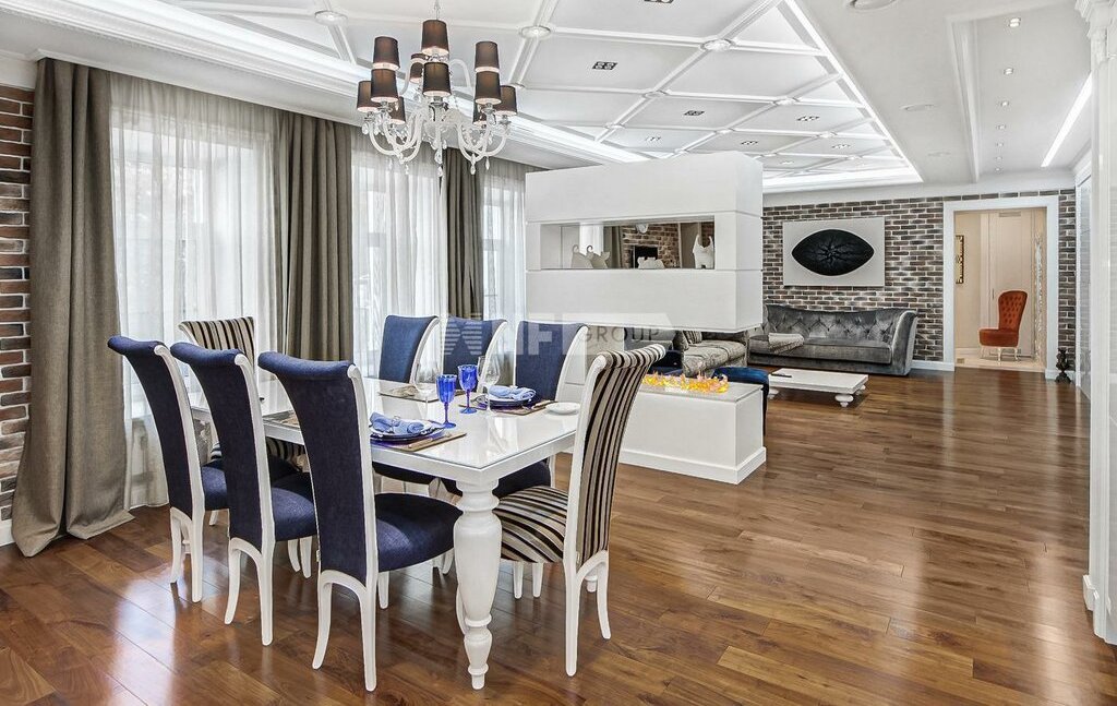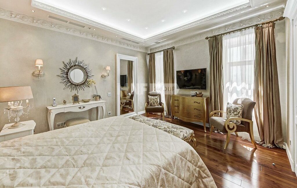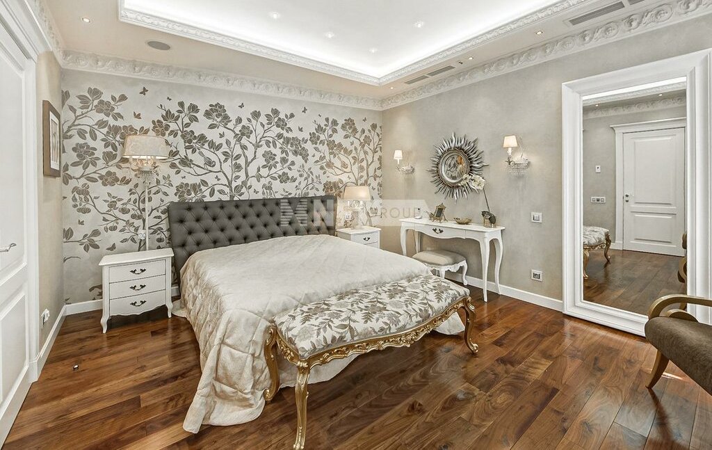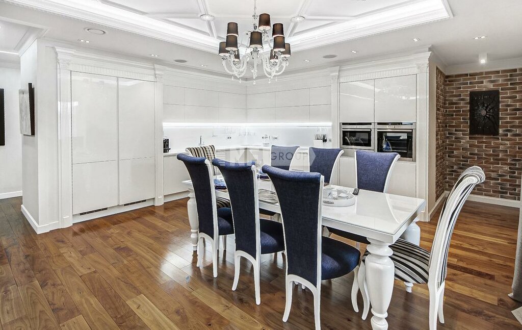 Классический интерьер квартиры оформлен по авторскому дизайн-проекту, в отделке использованы дорогостоящие материалы. Квартира полностью укомплектована итальянской мебелью, выполненной на заказ, и оборудована бытовой техникой ведущих премиум-брендов, установлена система «умный дом» с управлением кондиционированием, светом и музыкой.