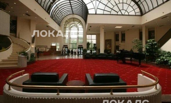 Монолитный жилой корпус с торговой галереей -пассаж, и сконцентрированных вокруг нее ресторанами, спортивно-оздоровительным центром, детским садом, прачечной и прочими коммерческими помещениями. Вход в здание оформлен в виде постмодернистского стеклянного портала, через который попадаешь в просторное пространство вестибюля и далее в интерьер торговой галереи