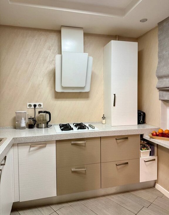 В квартире есть вся необходимая бытовая техника. Кондиционеры в жилых комнатах. Для удобства установлен водонагреватель ( удобно при отключении горячей воды на профилактику сетей).