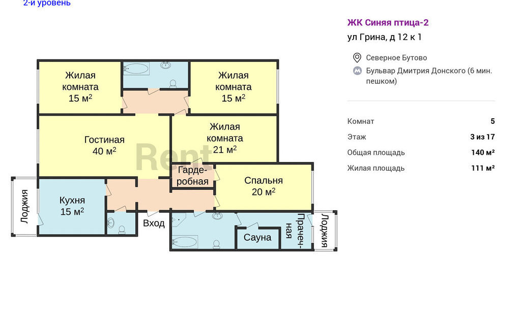 БЕЗ КОМИССИИ ДЛЯ АРЕНДАТОРА. Недалеко от Бутовского лесопарка, в жилом комплексе "Синяя птица-2", предлагается просторная комфортабельная квартира. Выходящая в лоджию кухня укомплектована функциональным гарнитуром и встроенной техникой, в том числе посудомоечной машиной. Оборудованы сауна и прачечная с естественным освещением. Установлены теплые полы и сплит-система, в одной из ванных - джакузи.