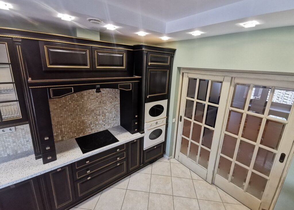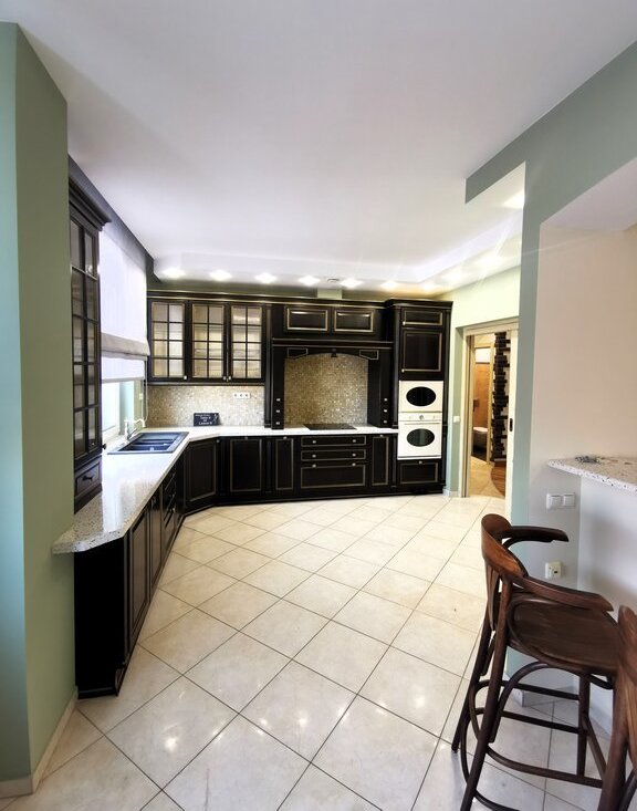 • Кухня: 20 м2, полностью оборудована: встроенная техника (духовой шкаф, варочная панель, посудомоечная машина, микроволновая печь), обеденная зона на 6–8 человек.