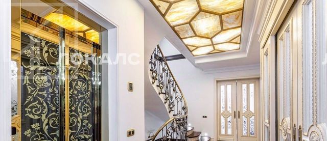 Планировка первого уровня: гостиная, два зимних сада, кухня, выход во внутренний двор; планировка второго уровня: две спальни, кабинет, гардеробная, ванная комната; планировка третьего уровня: две спальни со своими гардеробными и санузлами; на четвертом уровне расположена терраса; на цокольном этаже размещены бассейн, сауна, хаммам, два санузла, гардеробная, три кладовых. Бытовая техника от ведущих производителей, эксклюзивная мебель.