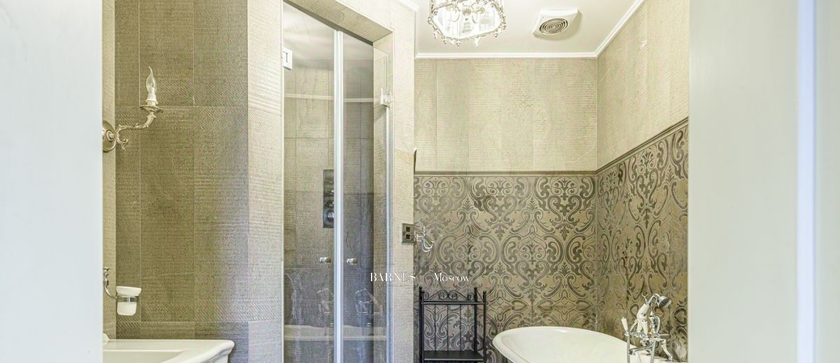 В квартире выполнена отделка в классическом стиле в светлых тонах.