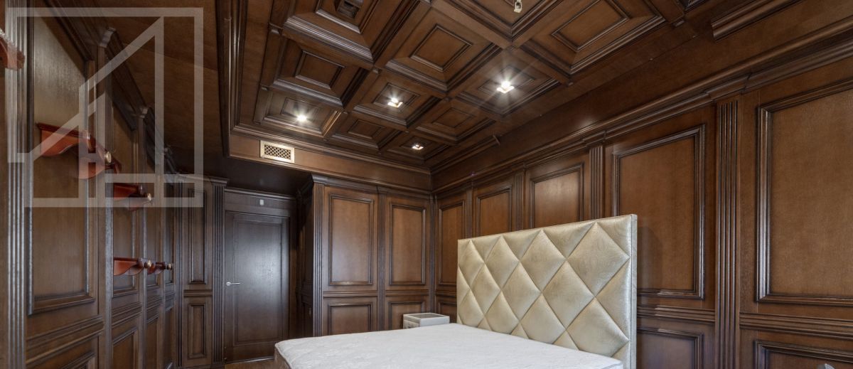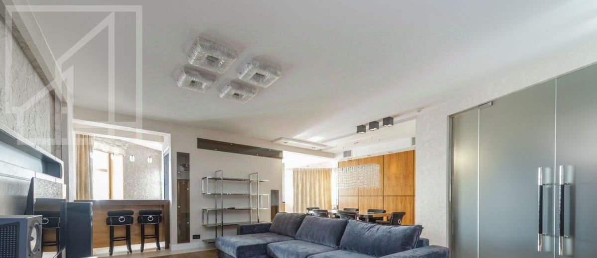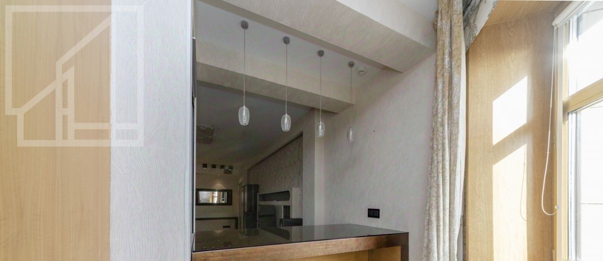 Планировка: кухня-гостиная, 5 спален, три санузла , постирочная, гардеробная. Есть балкон. Потолки 3м. Квартира полностью меблирована и укомплектована всей необходимой бытовой техникой. Выполнен качественный ремонт.