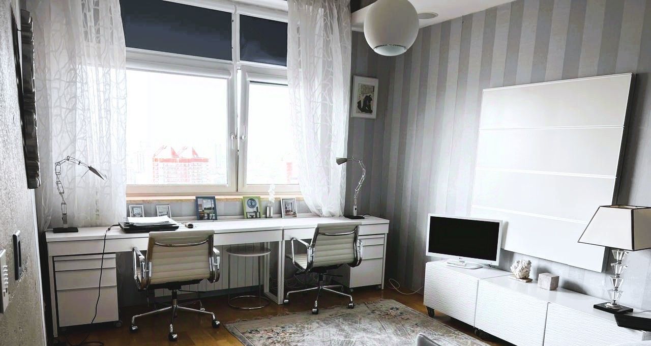 Предлагается уникальный трёхуровневый пентхаус в ЖК "Квартал на Ленинском". огороженный и охраняемый двор, презентабельный подъезд, подземный паркинг. В квартире выполнен качественный ремонт по авторскому проекту дорогостоящими натуральными материалами. Установлена по квартире система Умный Дом (управление климатом и освещением в квартире; регулирование штор и оконных жалюзи; управление музыкальными произведениями и возможность слушать музыку в любой точке квартиры и т.д.), которой можно управлять с мобильного телефона. На 1-м уровне располагаются: гостиная, кухня-столовая, детская игровая комната, спальня, санузел, домашний кинозал, постирочная-кладовая, гардеробная. На 2-м уровне располагаются: кабинет; библиотека; спальня; санузел; кладовая; балкон, который летом может преобразиться в лаунж-зону со столом и стульями санузел. На 3-м уровне располагается спальня в японском стиле с раздельным санузлом. Из джакузи можно любоваться на звезды, это позволяет архитектурное решение потолка в пентхаусе. На третьем уровне потолки до 6 метров. Имеется два машино-места в подземном паркинге. Приглашаем вас на просмотр этой уникальной квартиры. Записывайтесь на удобное для вас время и убедитесь в её достоинствах лично!