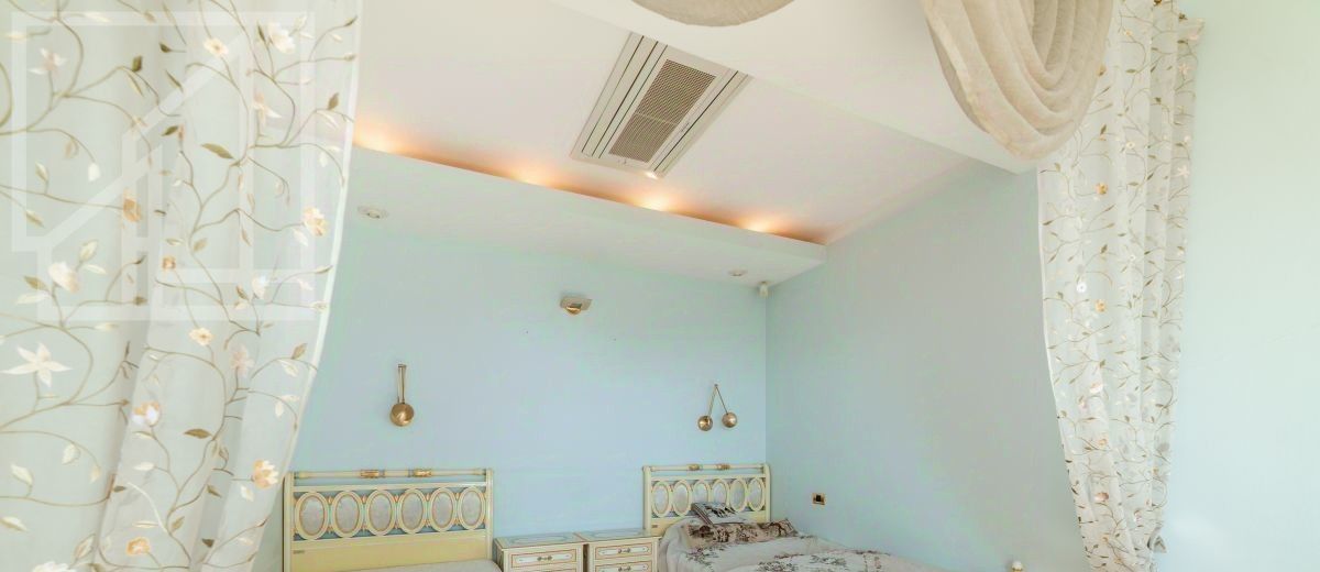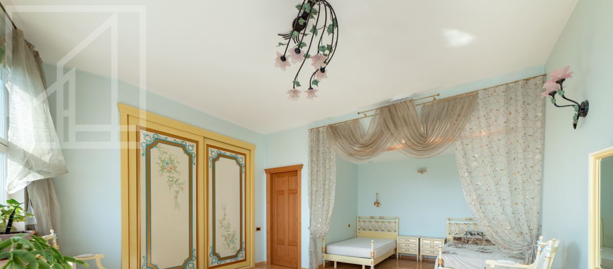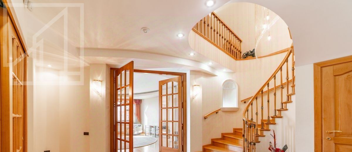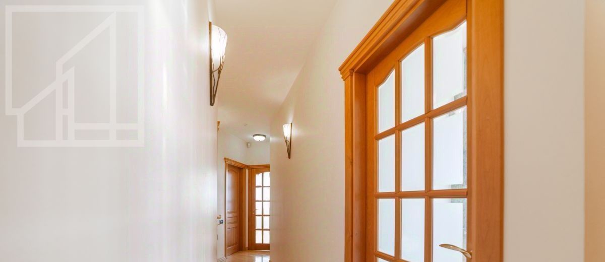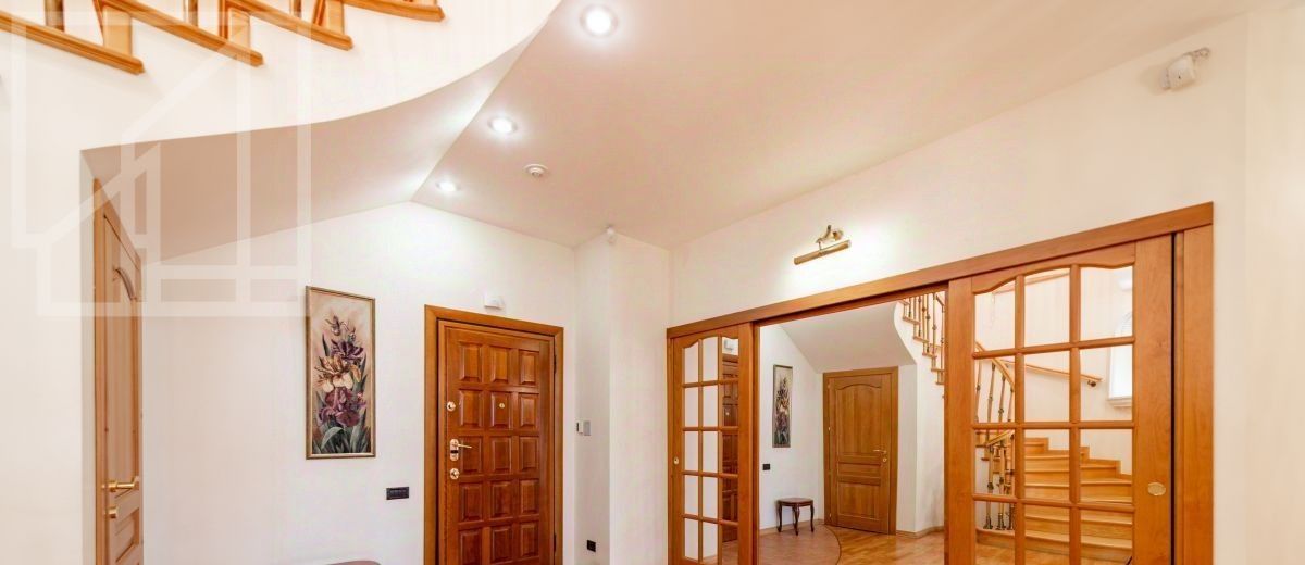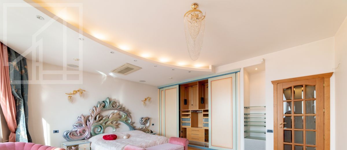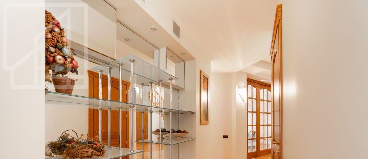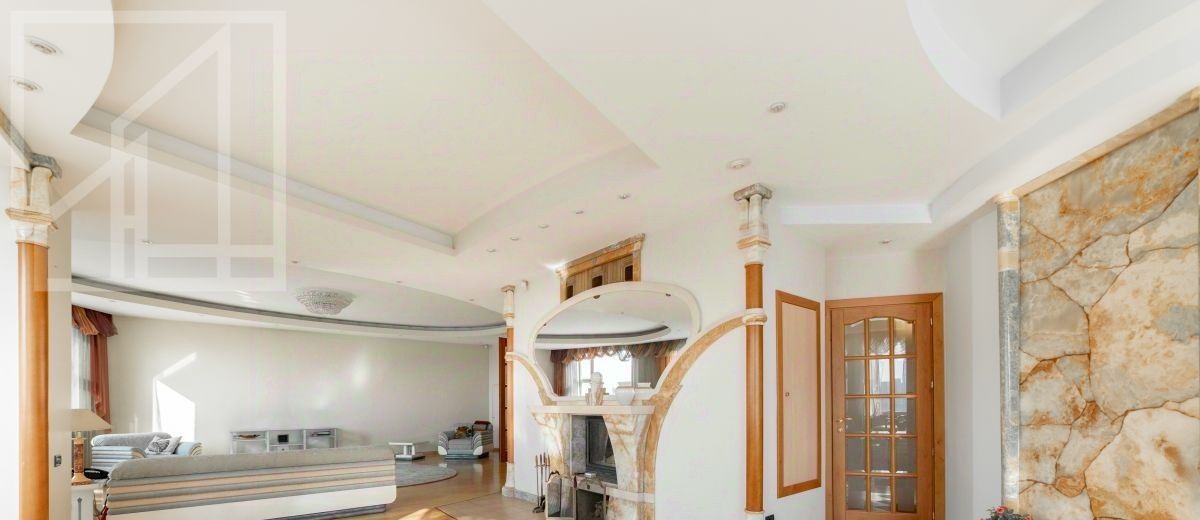 Планировка: 1-й этаж: гостиная-столовая совмещенная с кухней, 2 изолированный комнаты свободного назначения, гостевой с/у, с/у с душем, гардеробная, кладовая. 2-й этаж: прачечная, гардеробная, 2 спальни, 2 с/у, кабинет. В квартире имеется действующий камин, зимний сад, водопад. Эксклюзивная мебель и дизайн.
