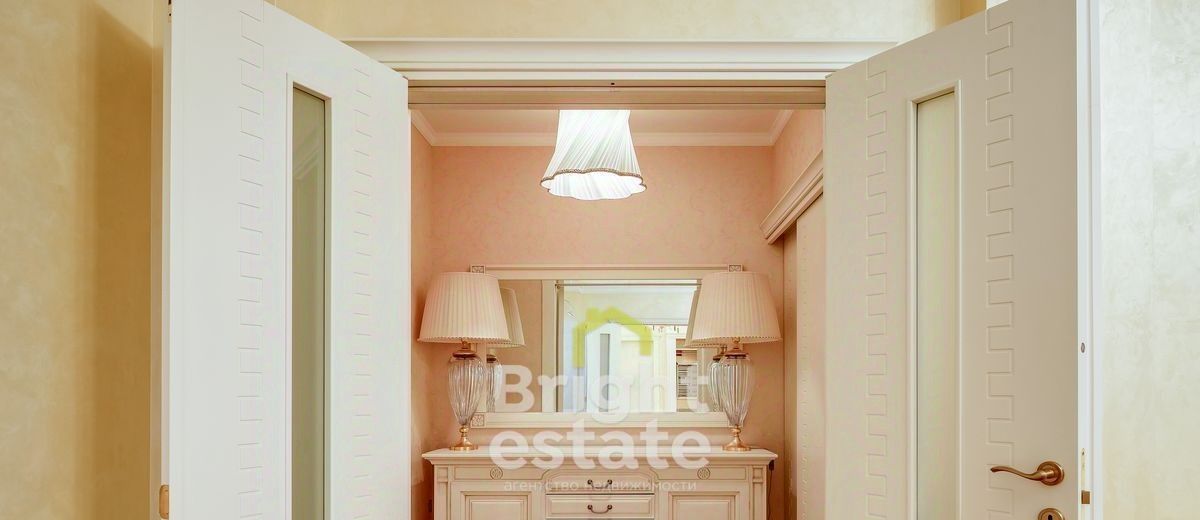 Пять спален с собственными ванными комнатами и гардеробными создают ощущение приватного отеля для семьи и гостей. Мастер-спальня продолжена отдельным кабинетом с панорамным остеклением, из которого открывается спокойный вид на зелёный парк комплекса. Это пространство для работы и размышлений, где утро начинается с тишины и света, а не с городского шума.