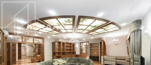 Планировка: кухня, 4 спальни, кабинет, 5 санузлов, гардеробная. Потолки 3.2 м. Квартира полностью меблированная, вывоз мебели обсуждаем.