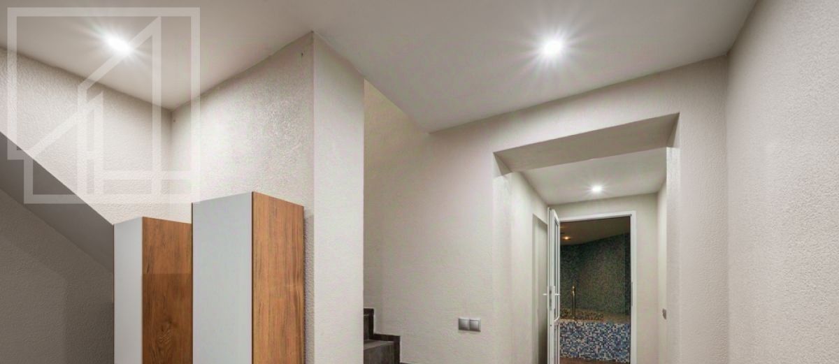 Планировка: -1 этаж: гараж на 2 места + 1 на улице, санузел, комната для хранения, сауна, бассейн; 1 этаж: гостиная, кухня, гостевой санузел;