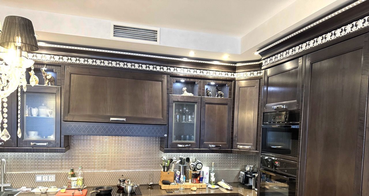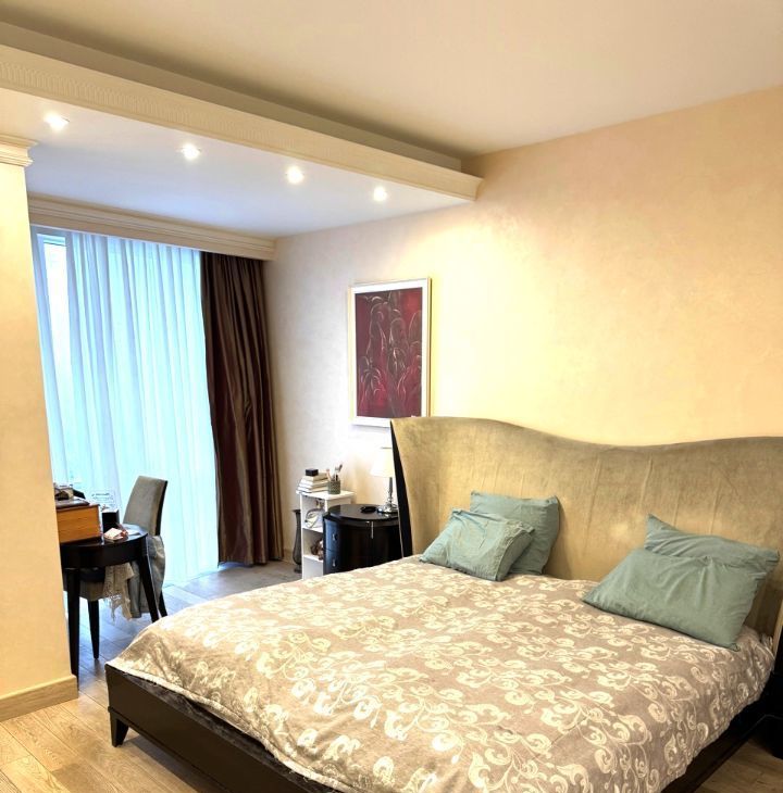 Шикарная многокомнатная квартира общей площадью 221 кв.м. в ЖК "Кутузовская Ривьера". Планировка: три санузла, кухня-столовая-гостиная, 4 спальни, кабинет, игровая, постирочная, 3 гардеробных, большое количество мест для хранения. Квартира полностью оснащена всей необходимой премиальной мебелью (Италия), сантехникой (Италия), кухонной техникой (Германия).