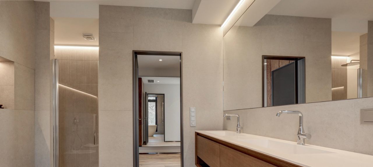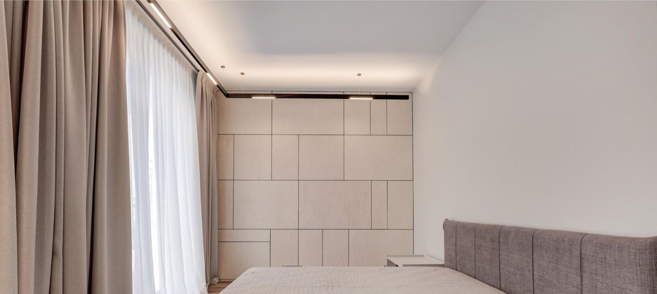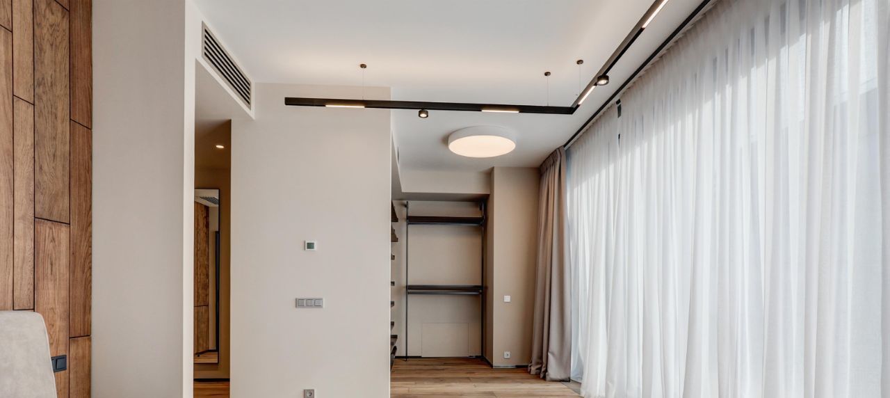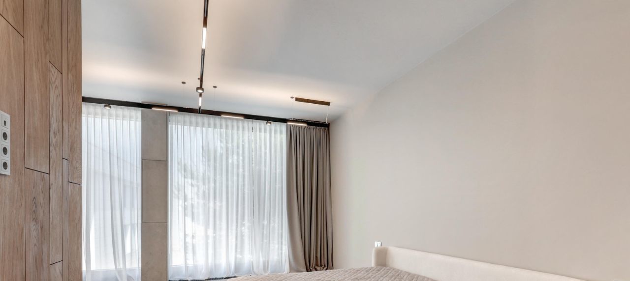 Три отдельные комнаты, каждая со своим санузлом, позволит расположится с комфортом в зависимости от предпочтений. Много мест для хранения вещей, отдельная гардеробная и высокие\глубокие шкафы.