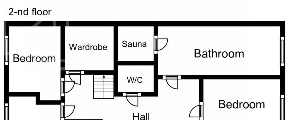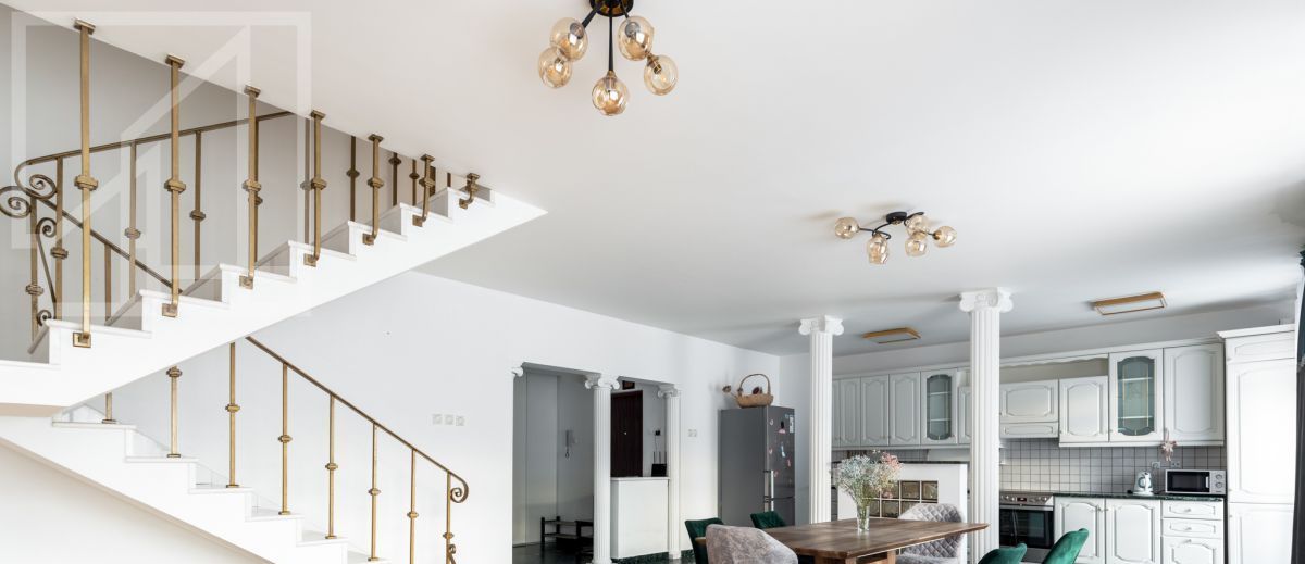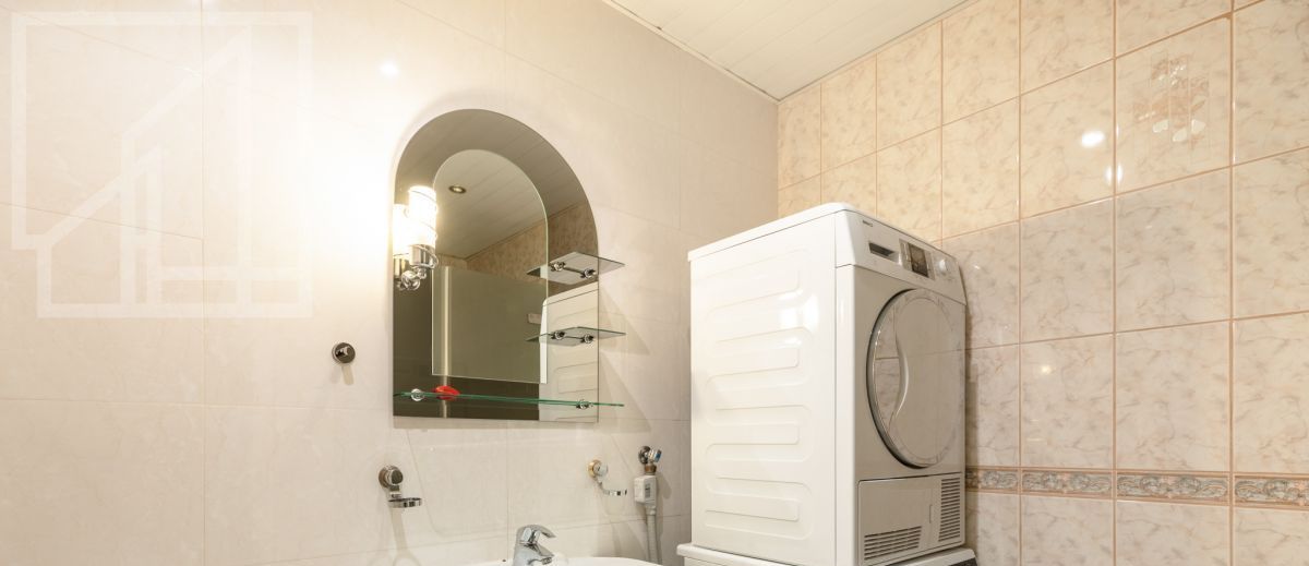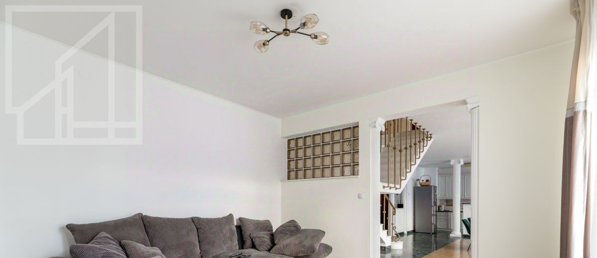 Планировка: на первом этаже: кухня-гостиная с обеденной зоной, две спальни, жилая комната (можно использовать как спальню или кабинет), совмещенный санузел с ванной, гостевой санузел; на втором этаже три спальни, совмещенный санузел с ванной и сауной, раздельный санузел. Квартира меблирована, укомплектована необходимой бытовой техникой. В квартире выполнен дизайнерский ремонт с использованием дорогостоящих материалов.