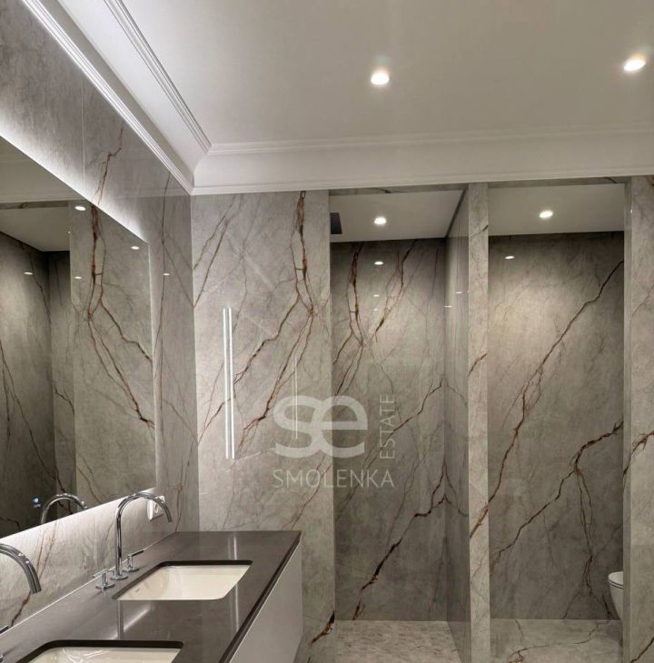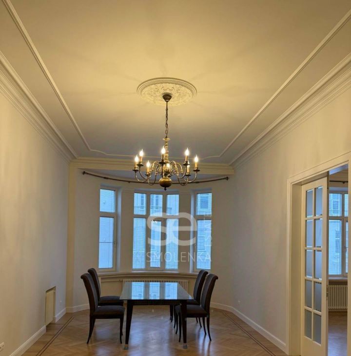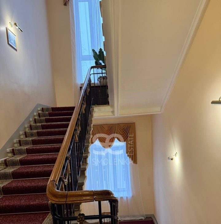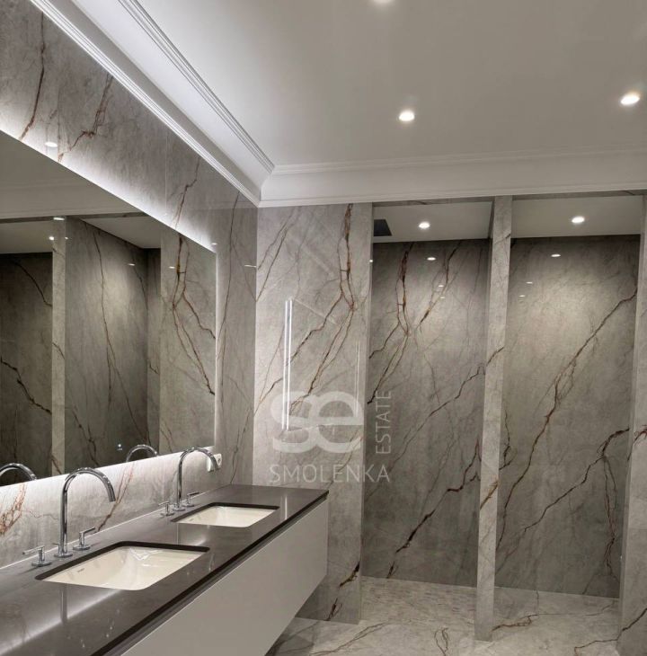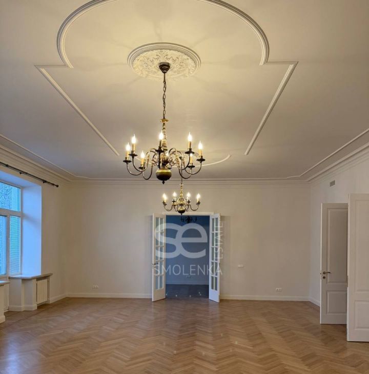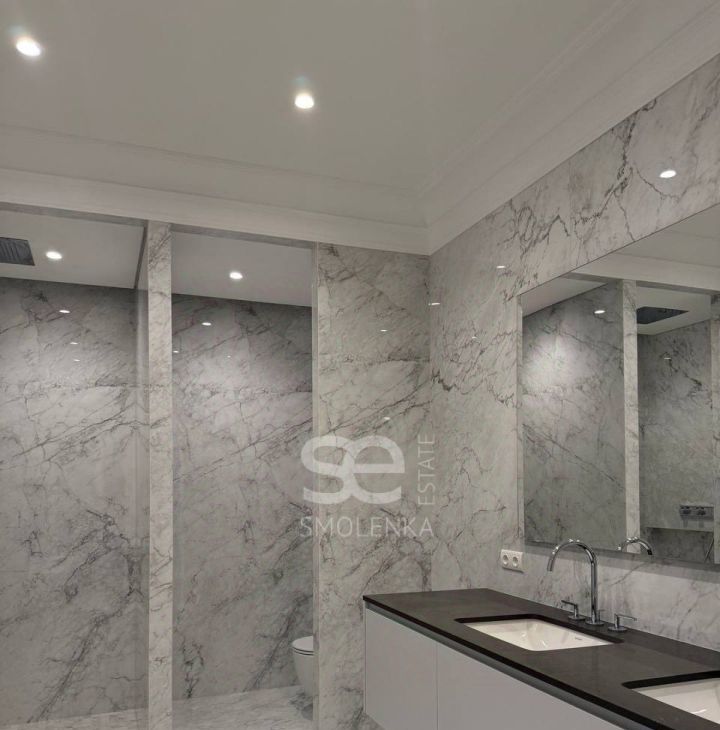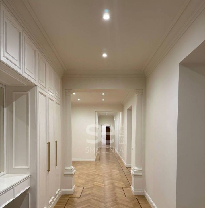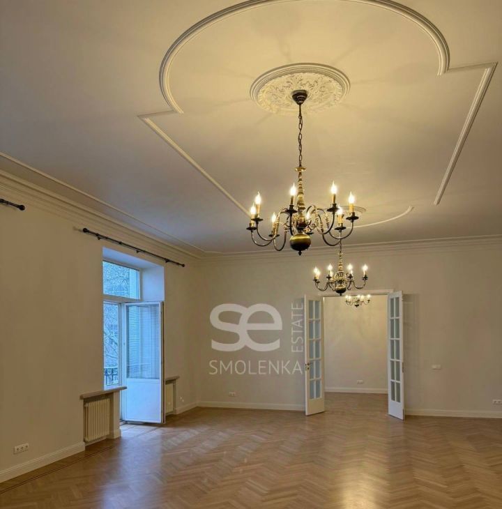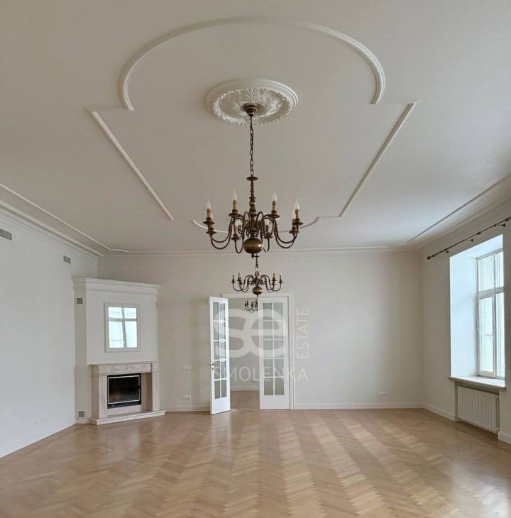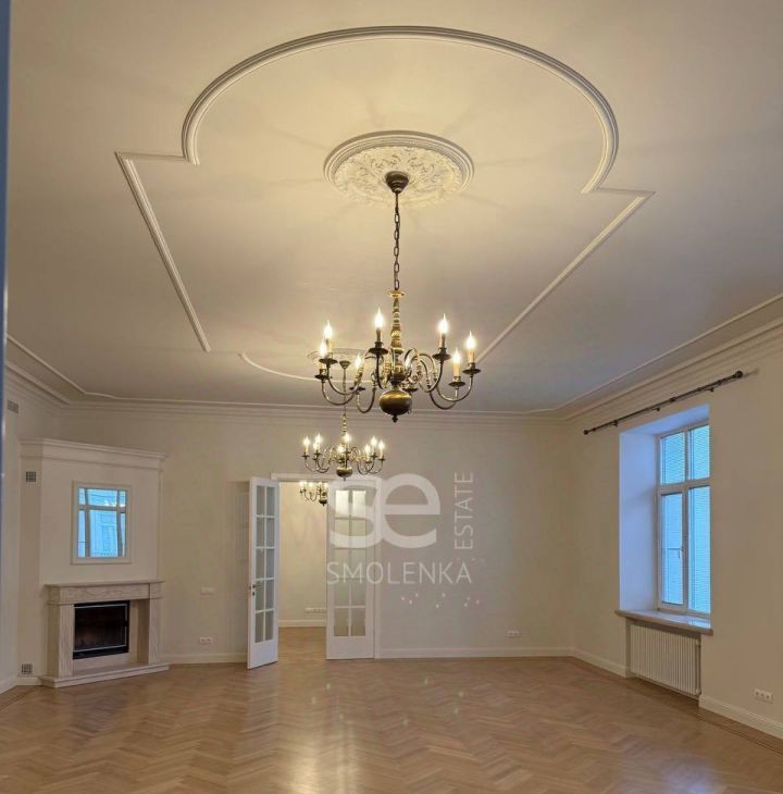 Планировка: кухня, гостиная с камином и выходом на балкон, столовая, кабинет, три спальни, гардеробная, постирочная, 3 с/у и 1 гостевой с/у. Квартира предлагается без мебели. Высокие потолки. Установлена приточно-вытяжная система вентиляции и кондиционирования. Окна во двор. Входная группа с шикарной парадной лестницей.