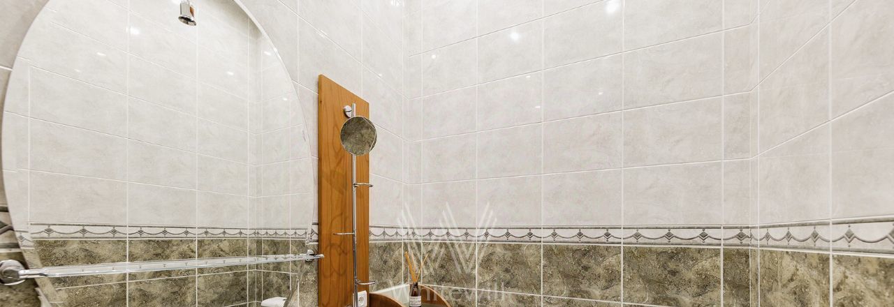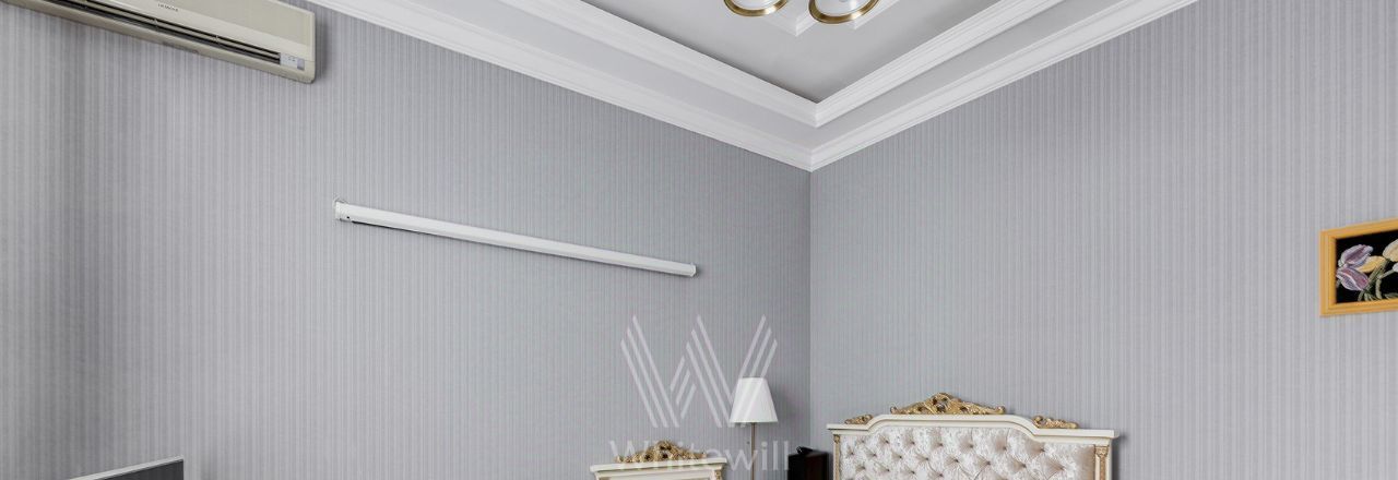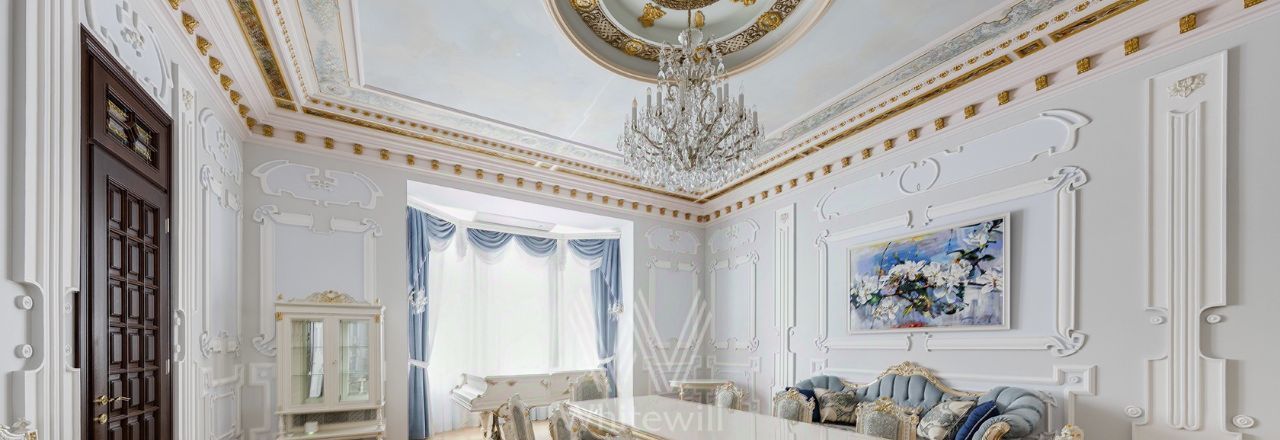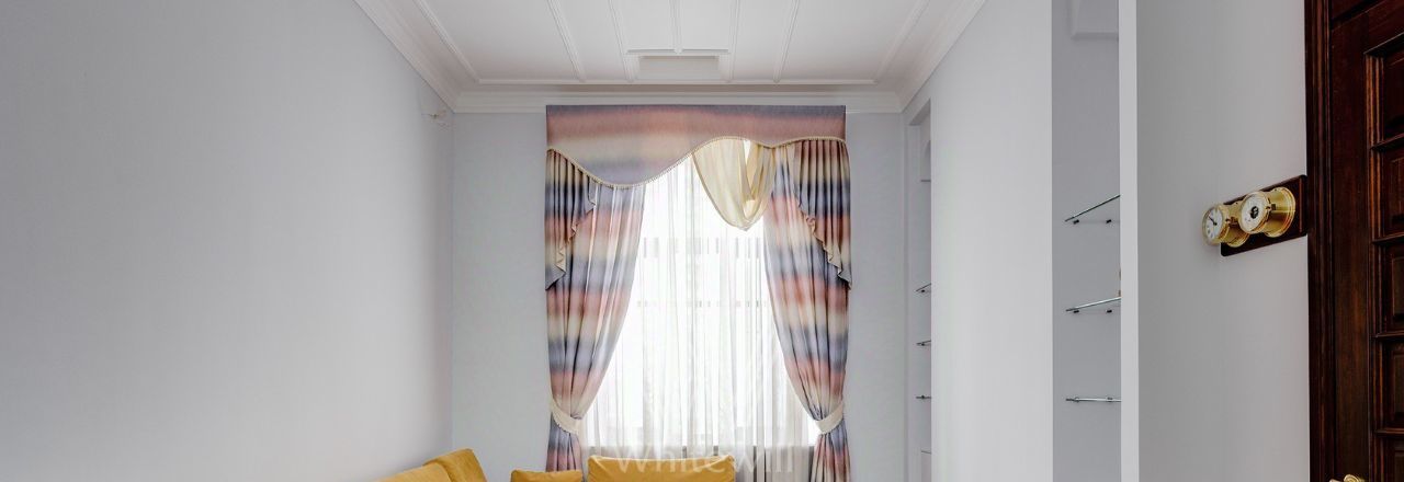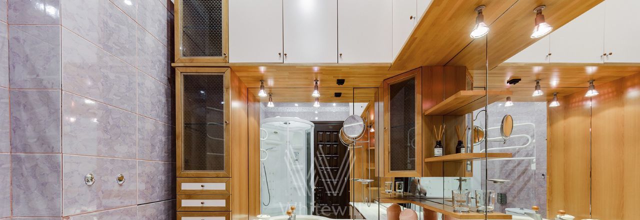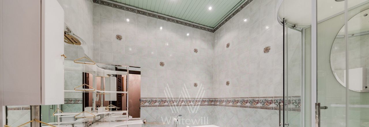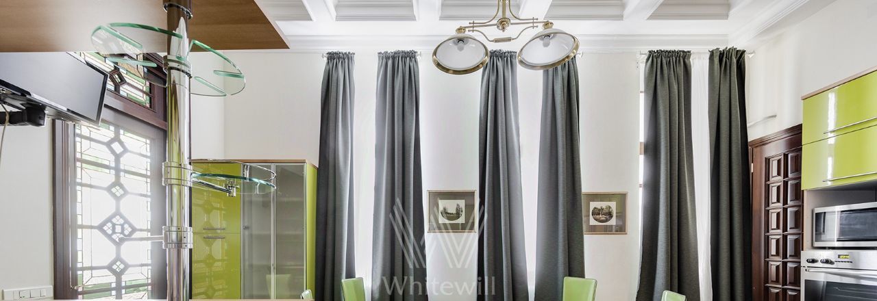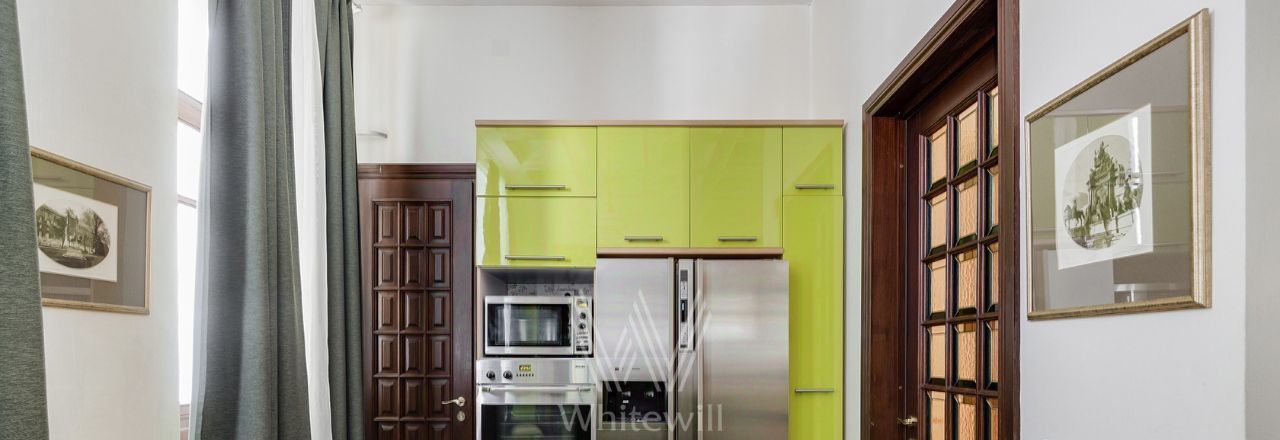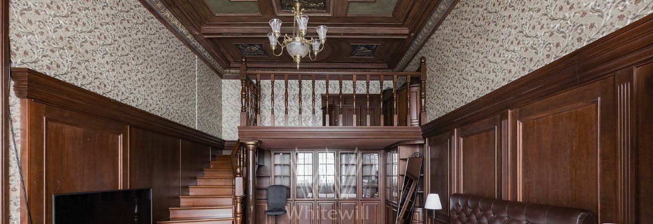 Просторная уютная квартира площадью 380 м² в особняке в центре Нового Арбата. Выполнена дизайнерская отделка, в интерьере сочетаются дворцовая классика и современный стиль. В отделке использовано натуральное дерево, паркет, светлая лепнина, кессоны на потолке. Высота потолков 4,5 метра.
