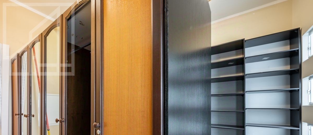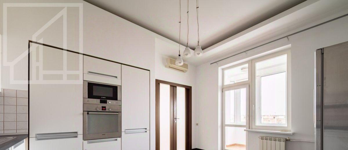 Планировка: гостиная, кухня, семь изолированных комнат, четыре ванные комнаты, гардеробная и балкон. Пентхаус после ремонта, частично меблирован, полностью укомплектован техникой. Потолки 2,8. Из окон открываются прекрасные панорамные виды, включая великолепный парк со спортивными и детскими площадками.
