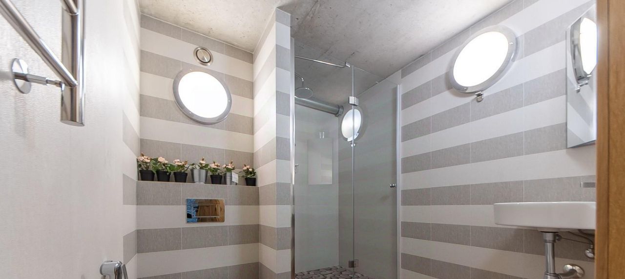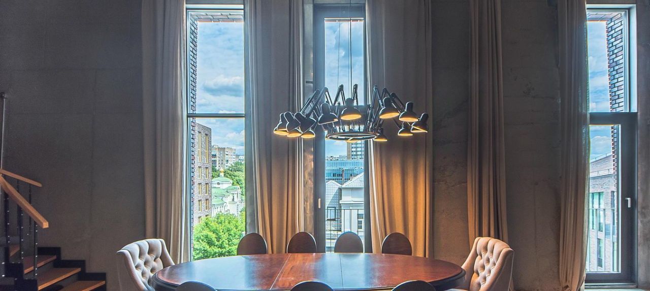 Планировка квартиры: через общий холл первого уровня попадаете в три разделенные дверными проходами квартиры, которые могут быть как разделены друг от друга, так и в виде общего объекта пользования: каждая из трех квартир имеет на первом уровне кухню-гостиную от 30 до 60 кв. метров, гардероб, туалетную комнату, камин на дровах и т.д. Каждая из трех квартир имеет выход на второй уровень в зону отдыха (спальня от 21 до 40 кв. метров), ванная комната, гардероб, рабочая зона. Интерьер: вся мебель и весь свет были изготовлены по индивидуальному проекту. Современная инженерия обеспечивает абсолютный комфорт, а самый настоящий дровяной камин подарит владельцам домашний уют. В квартире профессиональная система увлажнения, общедомовая система приточно-вытяжной вентиляции, локальная приточная вентиляция во все помещения, высота потолка 5,6 метров, уникальное панорамное остекление, виды на набережную реки Яуза, два дровяных камина, эл. управление шторами и многое другое.