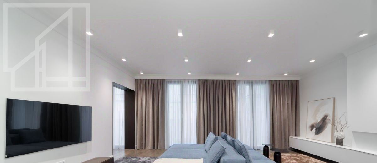 Планировка: 5 спален, 2 гардеробные, постирочная, кухня и гостиная, 6 санузлов. Камин. Квартира после ремонта, никто не проживал. Квартира поностью меблирована и укомплектована премиальной техникой.