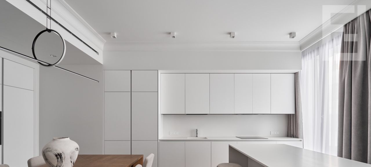 Светлая палитра. Высокие потолки. Панорамные окна.