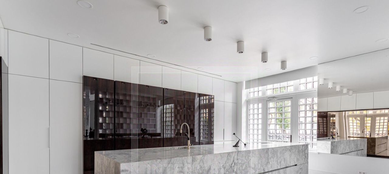 ID 45659: Просторный 2-уровневый таунхаус в одном из лучших жилых комплексов Москвы - Knightsbridge Private Park. В таунхаусе выполнен высококачественный ремонт в современном стиле: мебель Baxter, B&B, Zaha Hadid, бытовая техника Gaggenau. На полу итальянский мрамор, штучный дубовый паркет. Общая площадь: 640 кв. м Планировка: 1-й уровень включает просторную кухню, гостиную с высотой потолков 7,2 метра, кинозал, винную комнату, 2 спальни с ванными комнатами и гардеробными; 2-й уровень включает 4 спальни с ванными и гардеробными, кабинет. Предусмотрены приватное патио и 3 входа, в том числе с улицы. На внутренней территории разбит английский сад с зонами для отдыха, живыми изгородями и дорожками для пеших прогулок, открыт частный детский сад. В пешей доступности насыщенная инфраструктура центра столицы, городские парки Новодевичьи пруды и Усадьба Трубецких. Можно с детьми. Животные обсуждаемо.