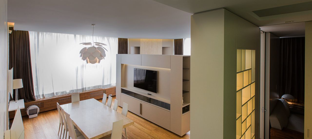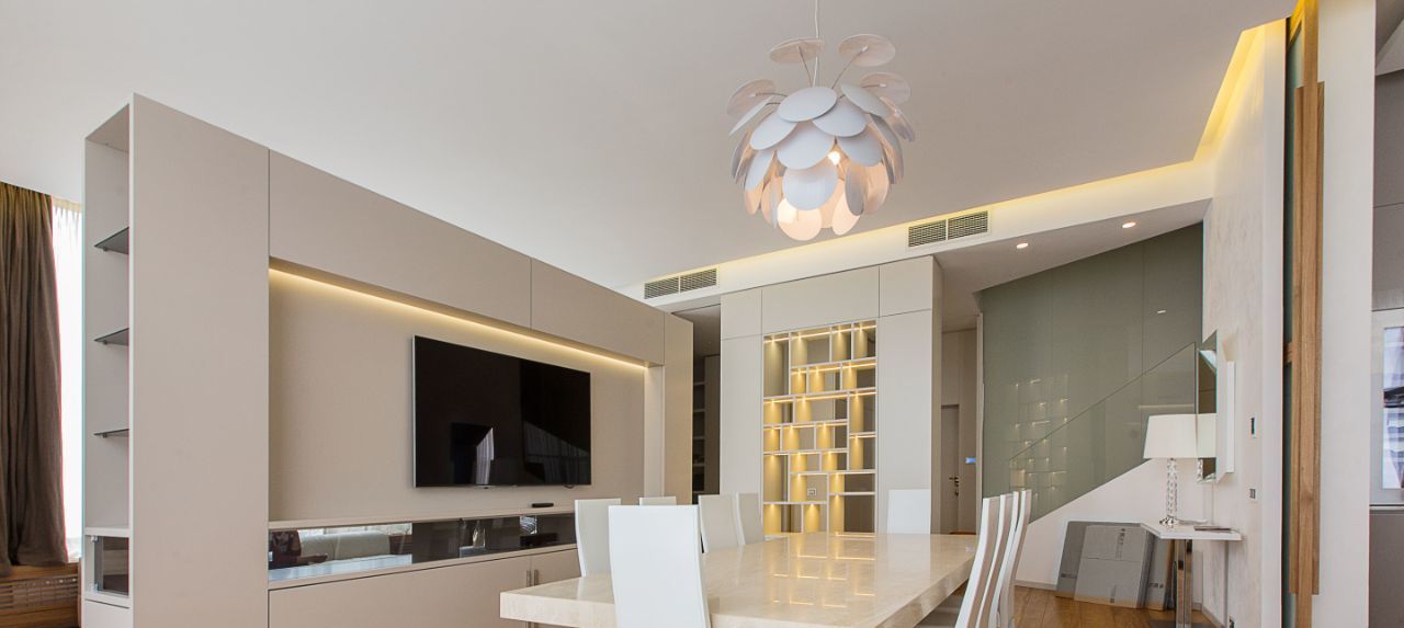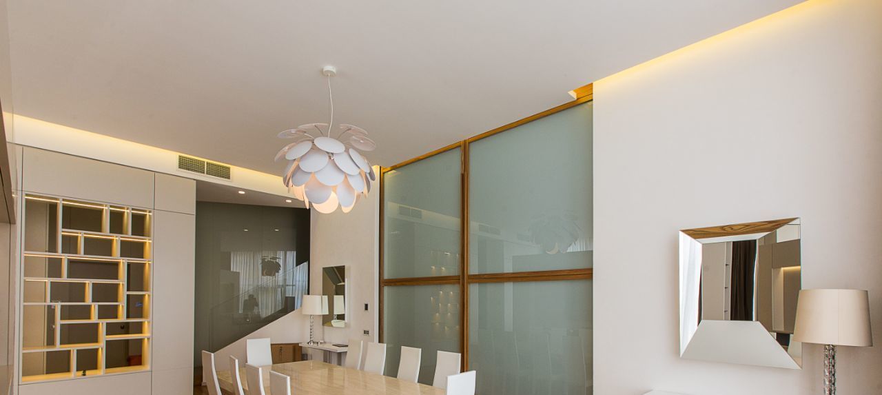 Квартира полностью укомплектована мебелью и высококлассной бытовой техникой . По всей квартире система кондиционирования и вентиляции.