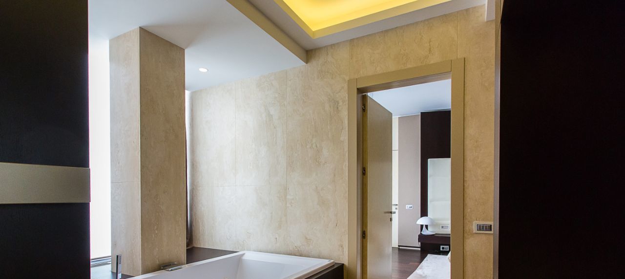 Выполнен высококачественный евроремонт с привлечением итальянских дизайнеров. Функциональная планировка и зонирование сделает ваше проживание максимально комфортным. На первом этаже: кухня столовая,зону кухни можно изолировать при помощи раздвижных дверей, гостиная, кабинет, санузел; на втором этаже: гардеробная, санузел с ванной и душевой, постирочная, две детские комнаты, мастер спальня со своей гардеробной, санузлом, хамамом; на третьем этаже свободное пространство, гостевая, санузел, кухня со всем необходимым оборудованием и со своим выходом на лестницу, а также открытая терраса.