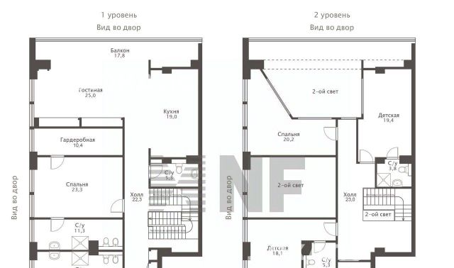 Лот: 51432. Предлагается двухуровневая семейная квартира с отделкой в жилом комплексе "Садовые кварталы".