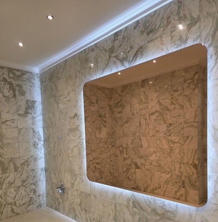 С/у, кухня, полы, подоконники и др - полная отделка итальянским мрамором.