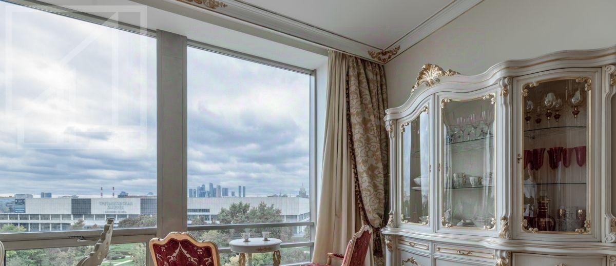 Планировка: просторная гостиная, кухня-столовая, 5 спален, кабинет, 3 полноценных санузла, 3 гардеробные, 1 постирочная, 1 техническая кладовая, 2 спальни с видовыми Балконами на Храм Христа Спасителя. Из окон открывается шикарный вид на парк Музеон, Москва Сити, Третьяковскую галлерею, Петра 1.