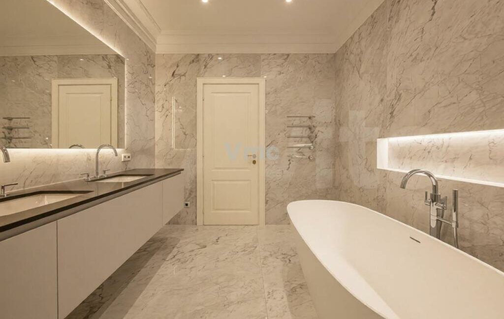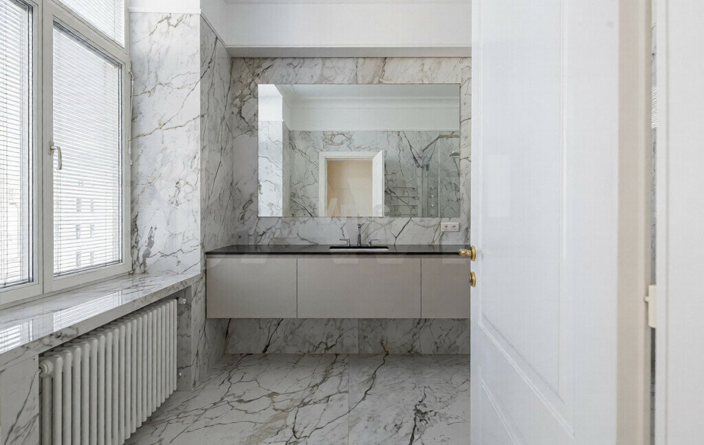 Хотя квартира сдана без мебели, в вашем распоряжении — посудомоечная машина, холодильник, два духовых шкафа, бойлер, джакузи и система подогрева полов. Отдельно выделена оборудованная постирочная комната. Окна квартиры выходят в тихий зелёный двор, наполняя пространство естественным светом.