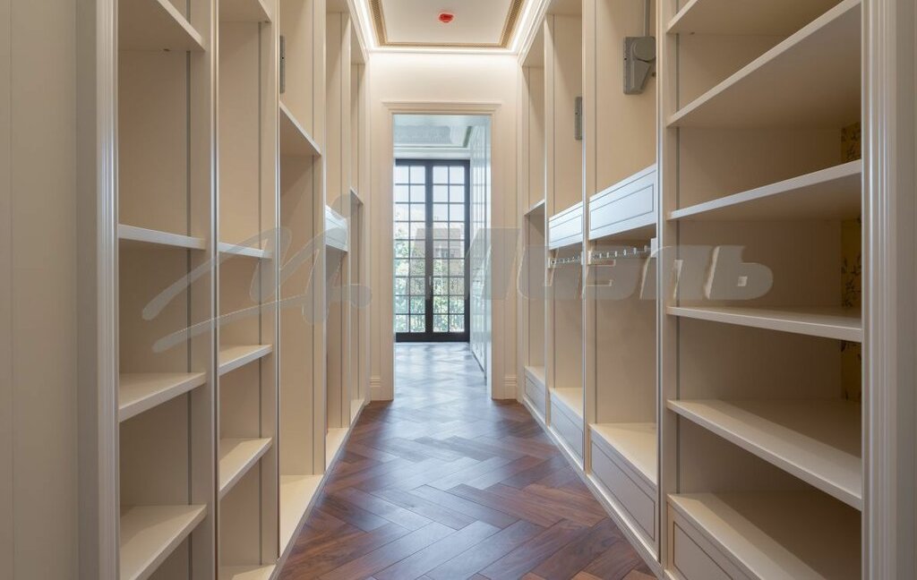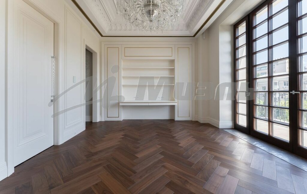 В квартире 7 комнат, функциональная планировка: кухня, столовая, гостиная, кабинет, четыре отдельные спальни, каждая из них со своим санузлом и гардеробной, постирочная, гостевой санузел, прихожая, просторный холл. Все окна выходят во внутренний двор, очень тихо.