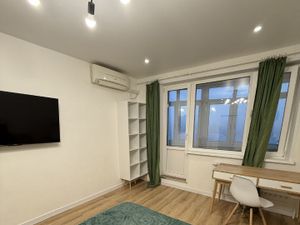 ЖК Well House на Ленинском (Велл Хаус на Ленинском). Большая студия на 46 этаже с качественным,современным ремонтом:панорамные окна,стеклопакет, кондиционер, на полу керамогранит и паркетная доска,с/у (ванна-джакузи,душкабина). На кухне заказной гарнитур со всей встроенной бытовой техникой.В основной зоне 2-х спальная кровать,угловой диван,зеркальный шкаф-купе,плазма.В холле шкаф-купе.Ухоженная придомовая территория закрыта и круглосуточно охраняется, вход и въезд строго по пропускам. Парковка для жильцов на придомовой территории. Красивая входная группа в подъезд, на входе консьерж, колясочная и зона отдыха. Мет. дверь, ДМФ, интернет. Вся инфраструктура на территории.