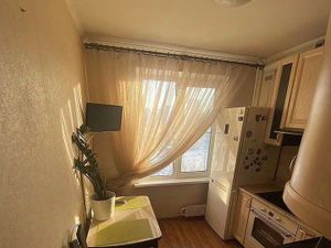 Кухня, совмещённая с гостиной ,с 2мя выходами на длинный балкон.