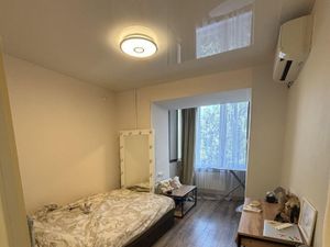 Комната с балконом в двухкомнатной квартире. В вашем распоряжении: двухспальная кровать, вместительный шкаф, рабочий стол, тумба с телевизором. Оборудованная кухня, стиральная машина, интернет. Во второй комнате проживает хозяйка с дочкой.