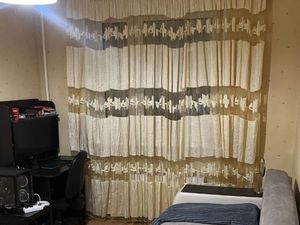 Сдам комнату с балконом для парня или девушки. В комнате диван-кровать, тумбочка, трубы и вешалки для вещей. В квартире есть стиральная машина, пылесос, холодильник, микроволновая печь, электрочайник.