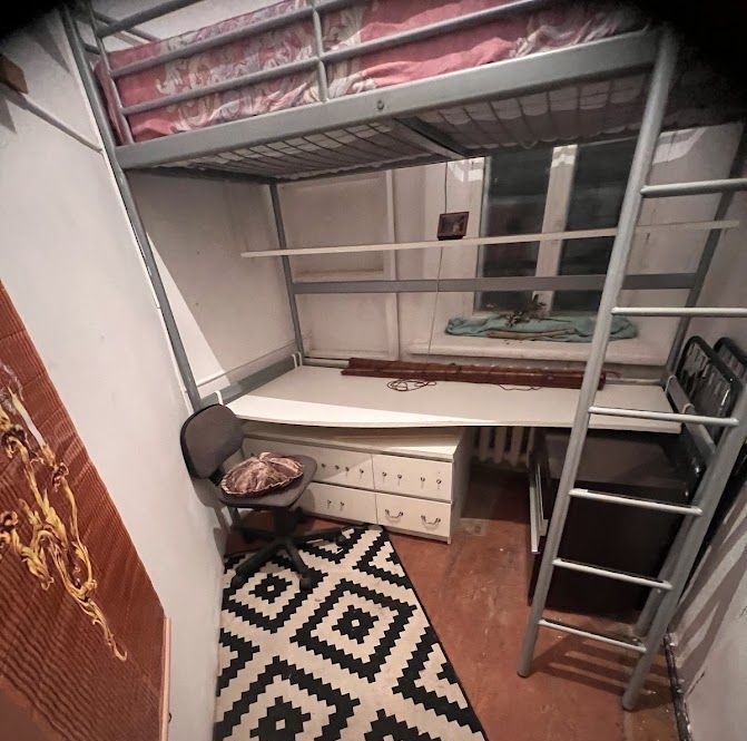 Комната небольшая аскетичной обстановки для жильца с малым багажом и офисным графиком.