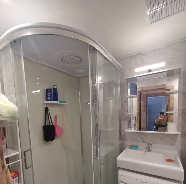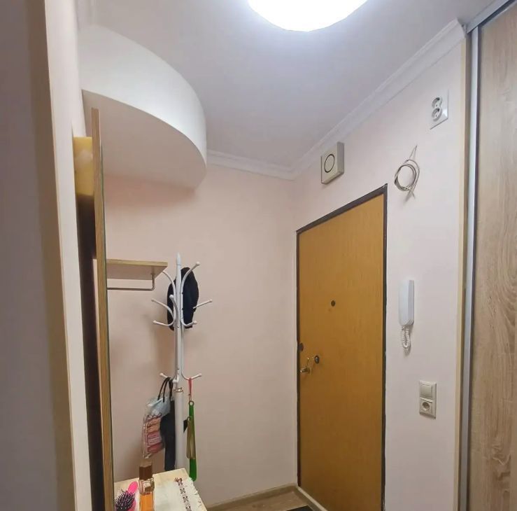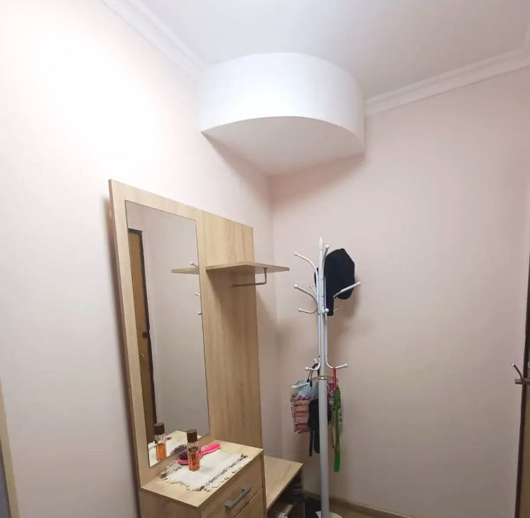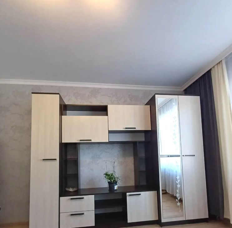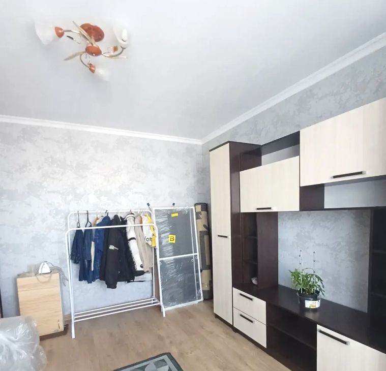 Комната укомплектована необходимой новой мебелью: диваном, модульным шкафом (см фото). В квартире имеется кухня с газовой плитой, холодильником, в ванной новая душевая кабина, стиральная машинка автомат, в прихожей просторный шкаф и места для хранения вещей.