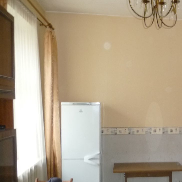 Меблировка: стенка 80-90-х годов, полуторную кровать, стол, стулья, холодильник в комнате. Отдельный стол и шкафчики на кухне. Интернет проведен, договор с провайдером заключается нанимателем.
