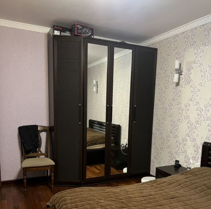 Есть шкаф, тумбочка, кровать