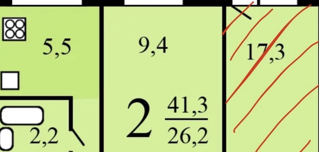 1 комната 17,3 кв.м с коридором, ведущим в комнату,