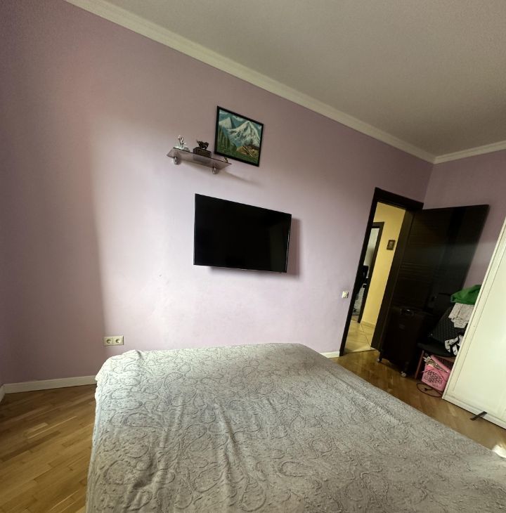 В комнате, 2х спальная кровать, шкаф, телевизор. 2 комода