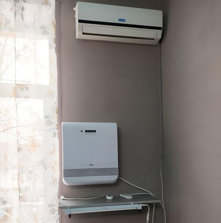 В комнате - двухкамерный холодильник, пылесос, настенный кондиционер с пультом ДУ, бризер (приточный очиститель воздуха) с пультом ДУ, стиральная машина. Хорошая транспортная доступность, станция Лихоборы (МЦК и МЦД) - 12-15 минут пешком, автобус - 3-4 минуты.